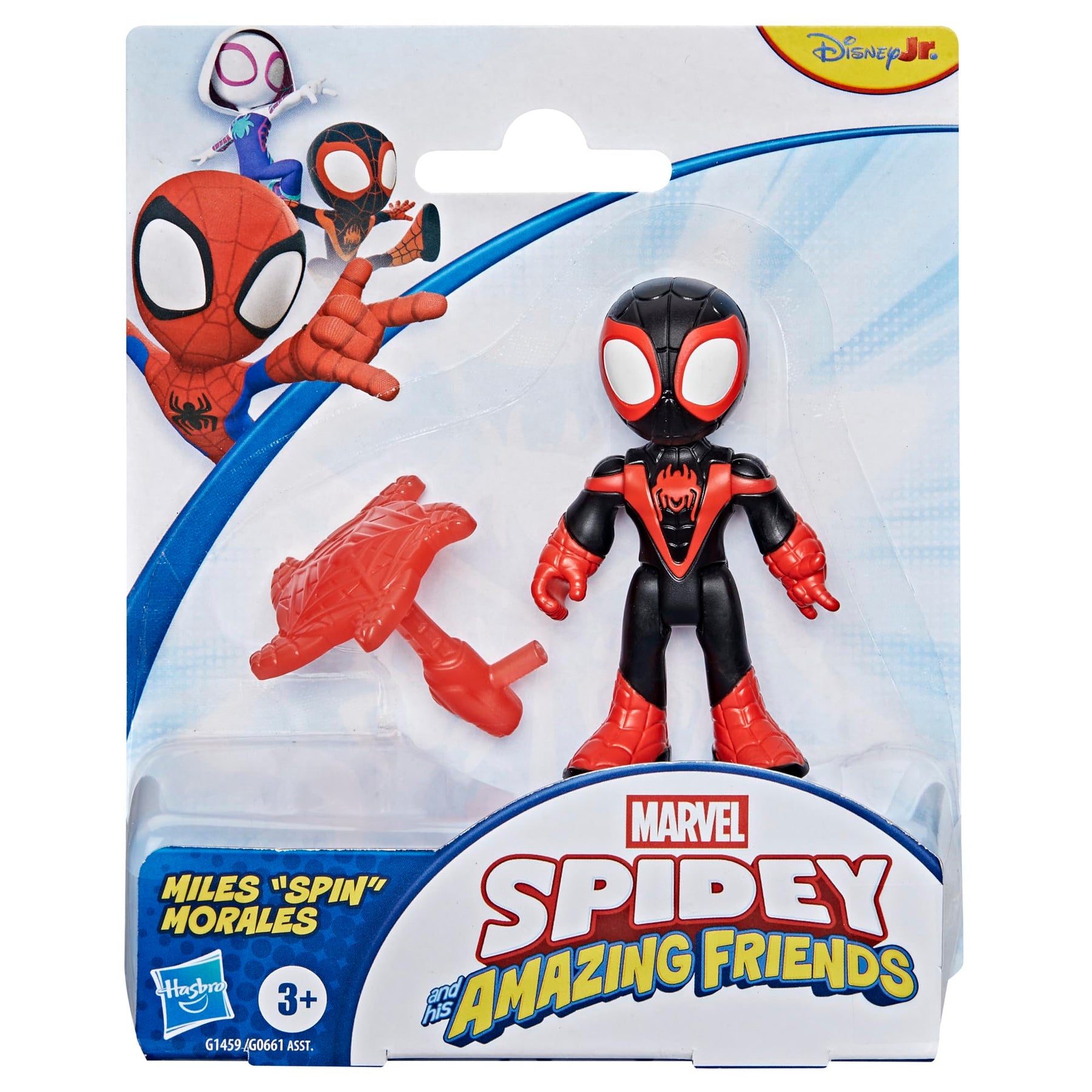 Join Team Spidey on thrilling wall-crawling adventures with this collectible Miles 'Spin' Morales action figure from the Disney Jr. series Spidey and His Amazing Friends! This 7.6 cm (3 inch) Marvel action figure features entertainment-inspired design and deco, perfect for preschoolers who love to recreate their favorite superhero moments or imagine new web-slinging escapades.