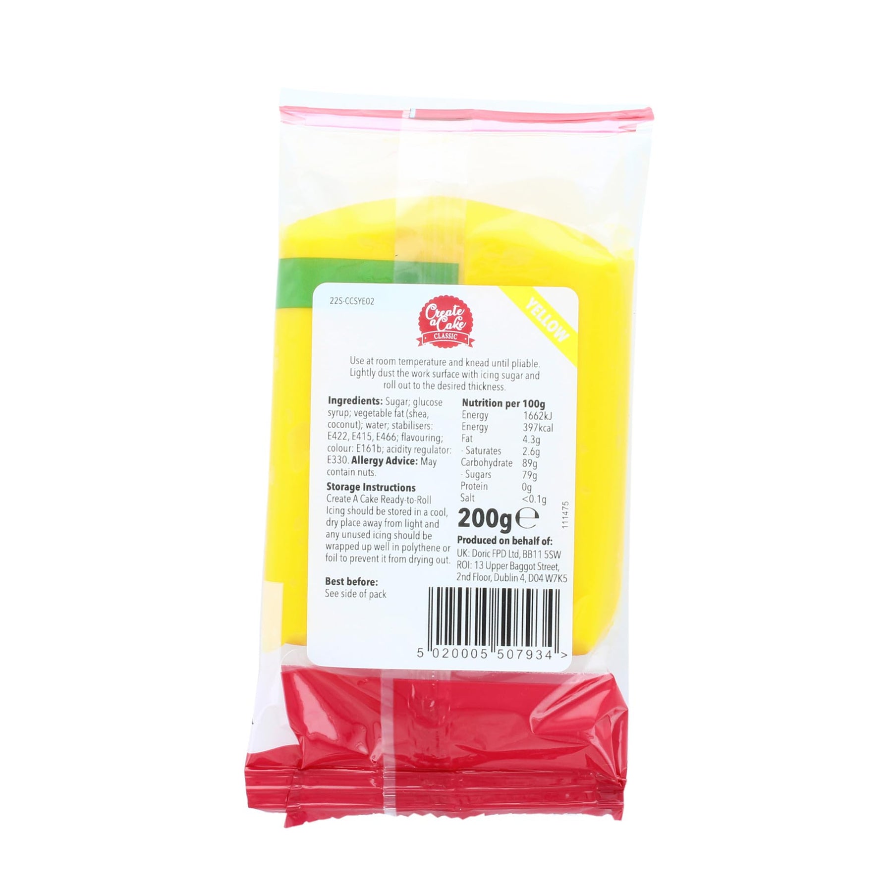 Transform your baking creations with Create A Cake Ready to Roll Icing, a smooth and pliable yellow fondant icing perfect for decorating cakes, cupcakes, and cookies. Ideal for both amateur bakers and professional cake decorators, this palm free sugar paste offers a silky texture that's easy to knead, roll, and shape into stunning edible designs.