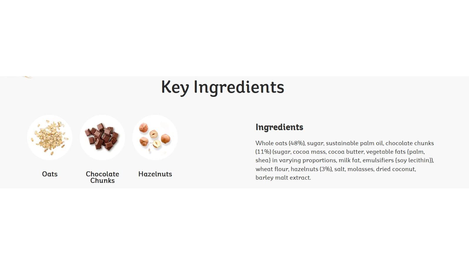 - Includes 11% chocolate chunks and 3% hazelnuts