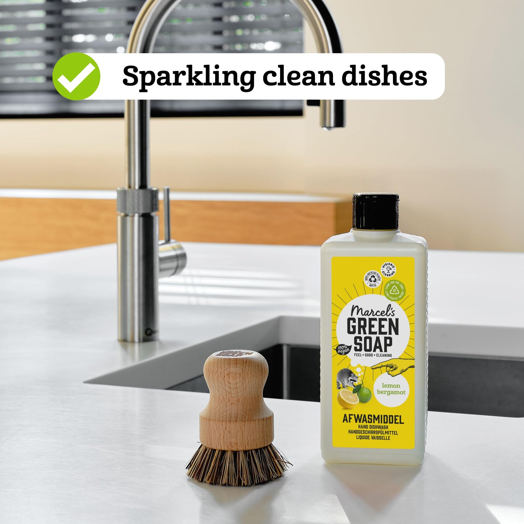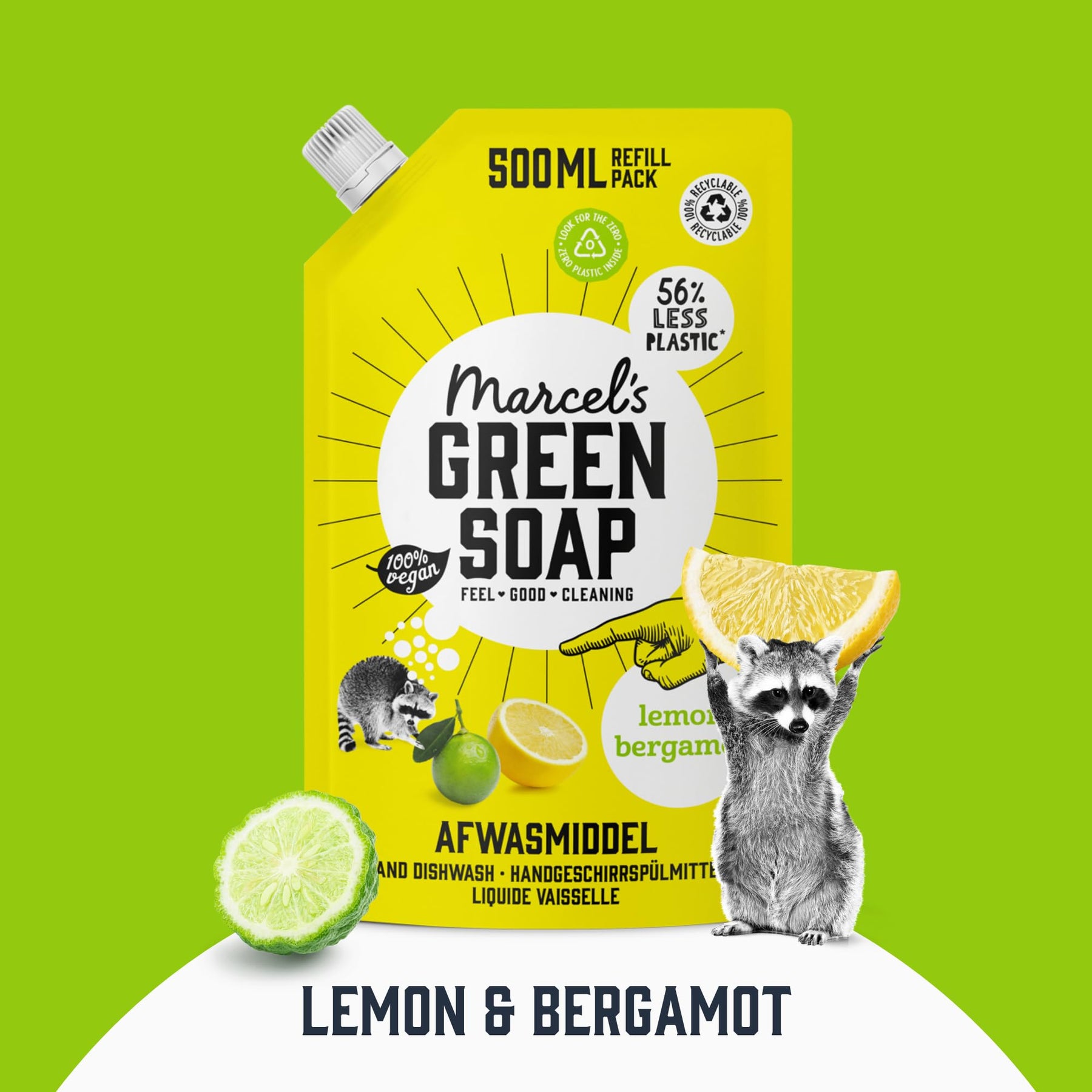 Marcel's Green Soap Washing-up Liquid Lemon & Bergamot Refill offers a refreshing and eco-conscious way to care for your dishes and hands. Infused with essential oils of lemon and bergamot, this plant-based formula delivers a zesty citrus scent that transforms dishwashing into a sensory experience. The soft foam is gentle on skin, enriched with natural soaps that care for your hands while effectively cutting through grease.