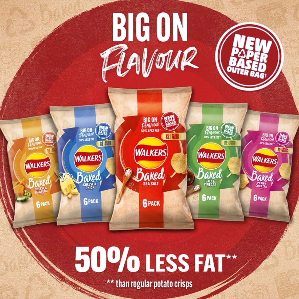 Enjoy the great taste of Walkers with a lighter twist – these Baked Snacks in Sea Salt flavour deliver a satisfying crunch with 50% less fat than regular potato crisps. Perfectly seasoned with sea salt, they're made using the finest quality ingredients and baked, never fried, for a tastier snack you can feel good about.