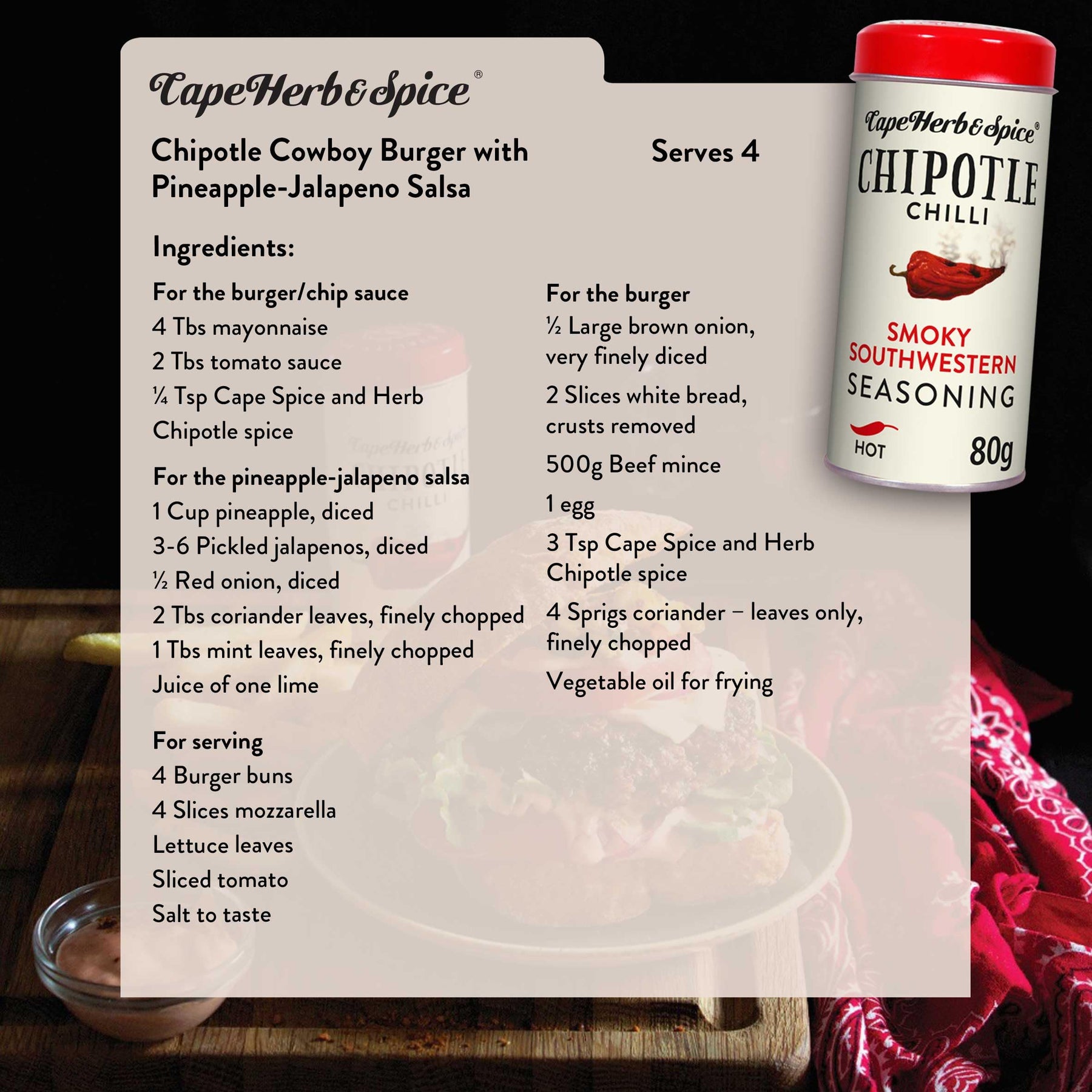 Elevate your culinary creations with Cape Herb & Spice Chipotle Chilli Smokey Southwestern Seasoning Condiment, a gourmet blend crafted for those who love bold, smoky heat. Perfect for spicing up BBQs, grilled meats, or roasted vegetables, this convenient tin-packaged seasoning delivers rich, complex flavour with every use.