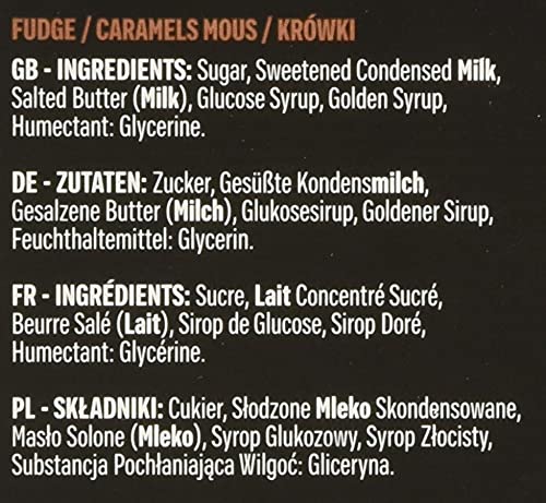 • Ingredients: Sugar, Sweetened Condensed Milk, Salted Butter (Milk), Glucose Syrup, Golden Syrup, Humectant: Glycerine