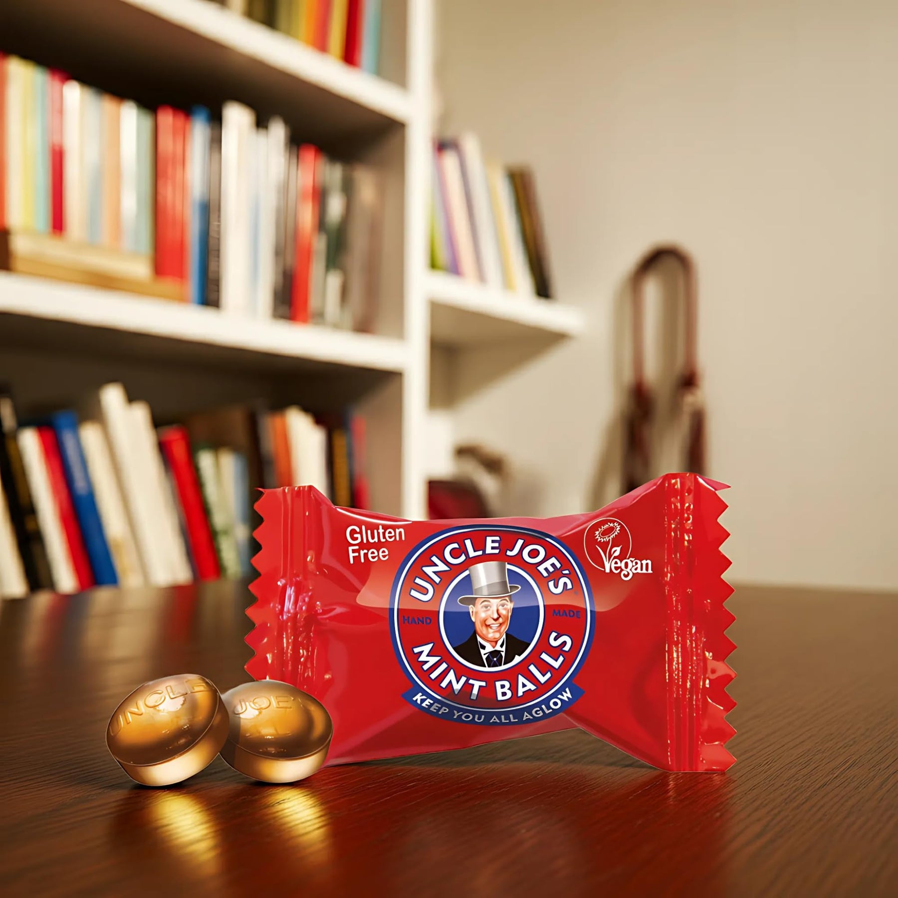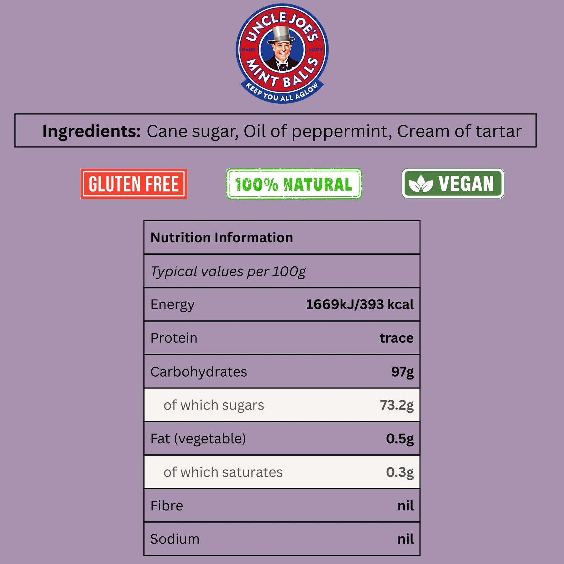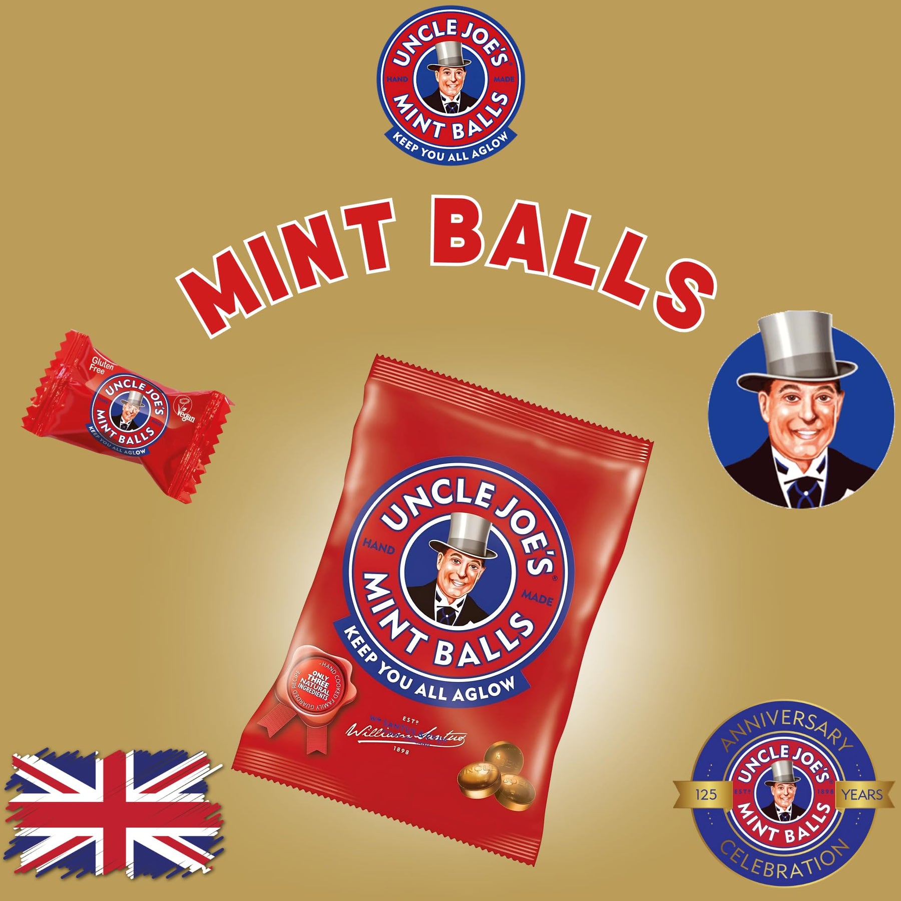 Enjoy the iconic taste of Uncle Joe's Mint Balls, a beloved English confectionery tradition since 1898. First crafted by Ellen Santus in Wigan, England, these refreshing mint sweets are still made using the original family recipe with just three natural ingredients: cane sugar, oil of peppermint, and cream of tartar.
