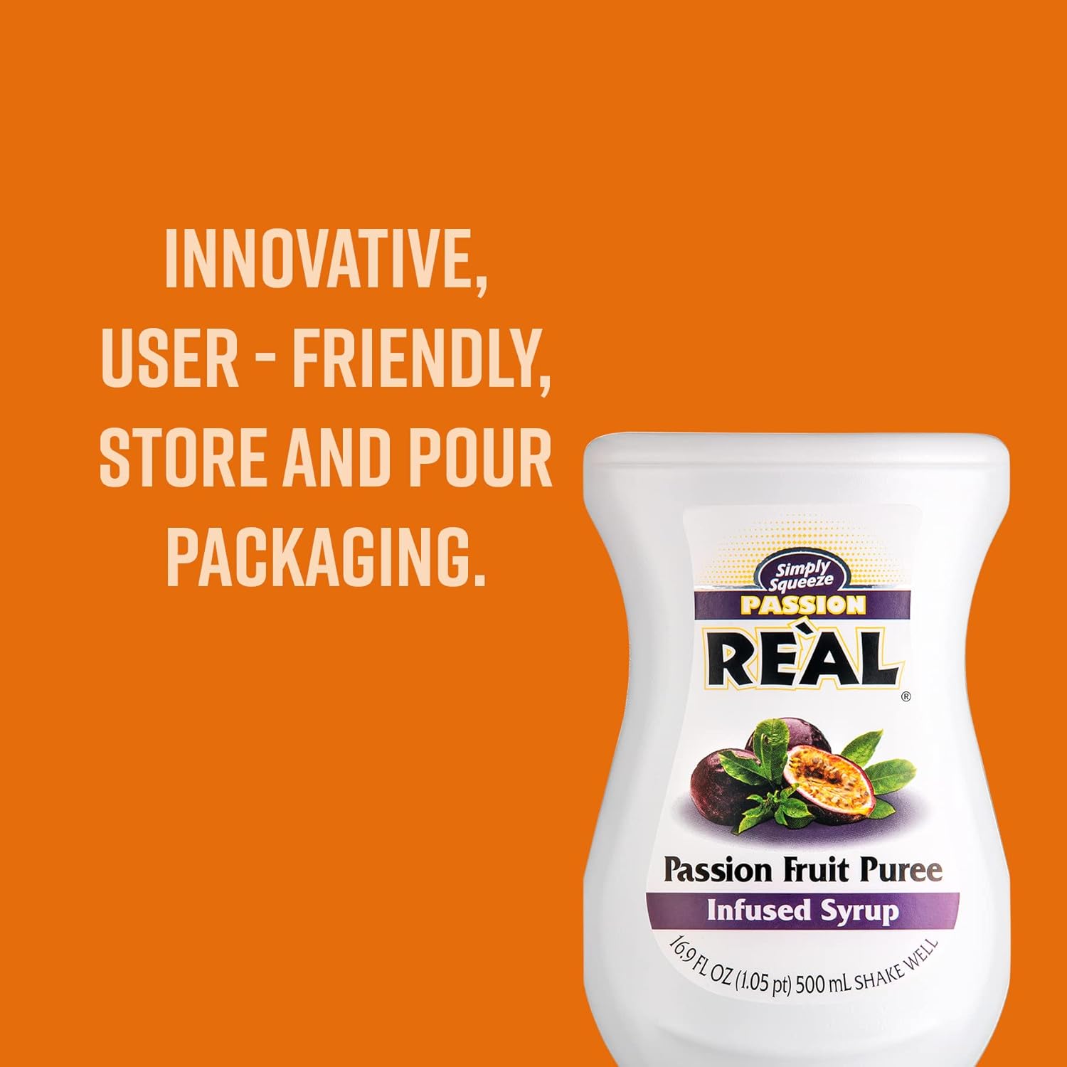 • RE"AL Syrups Passion Fruit Puree Infused Fruit Syrup for Cocktails, Cooking & Baking