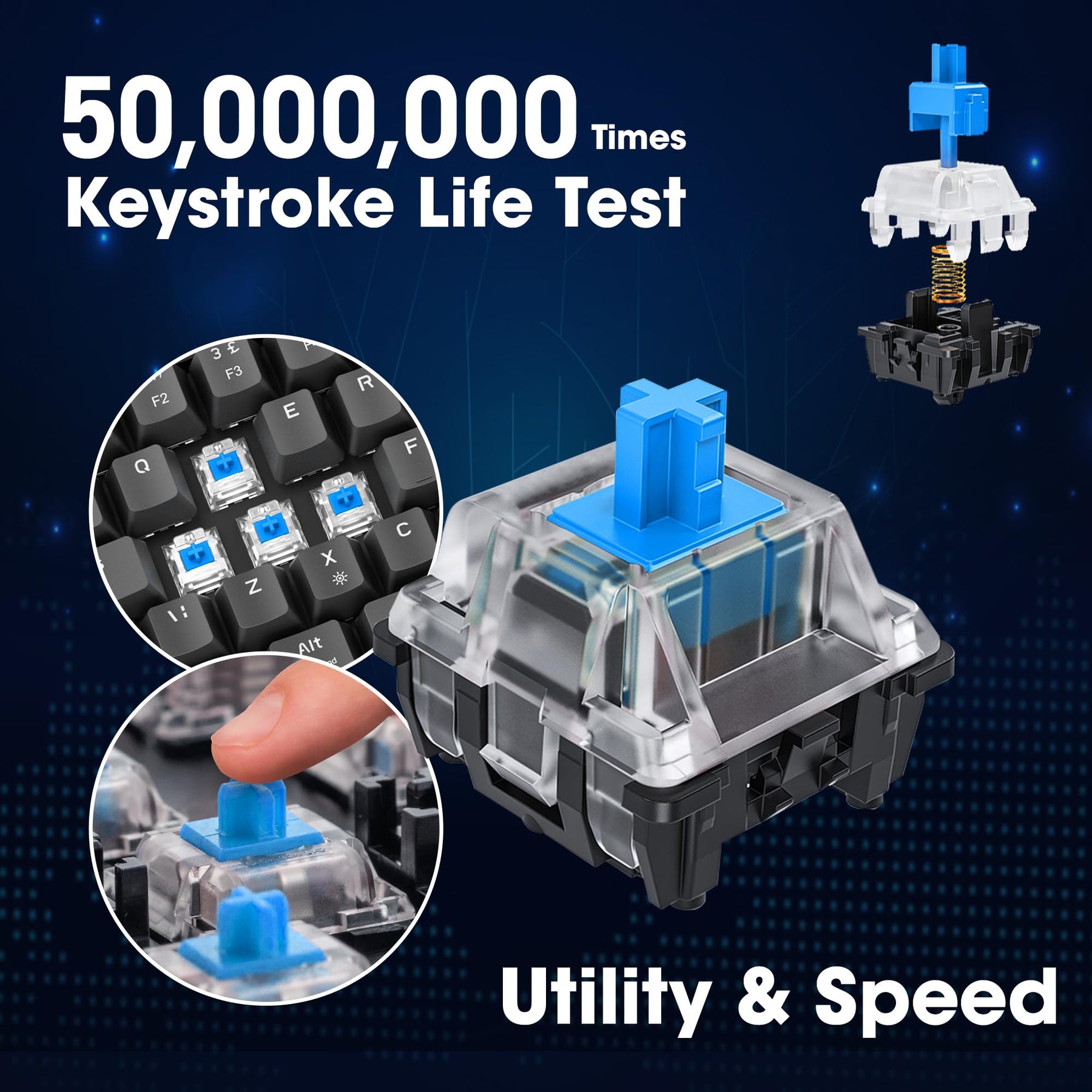 - Blue mechanical switches deliver tactile feedback and an engaging typing experience