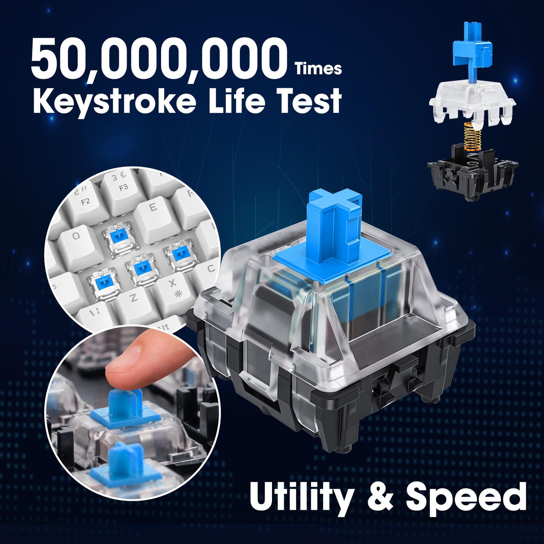- Equipped with blue switches for a tactile, clicky feedback ideal for typing and gaming