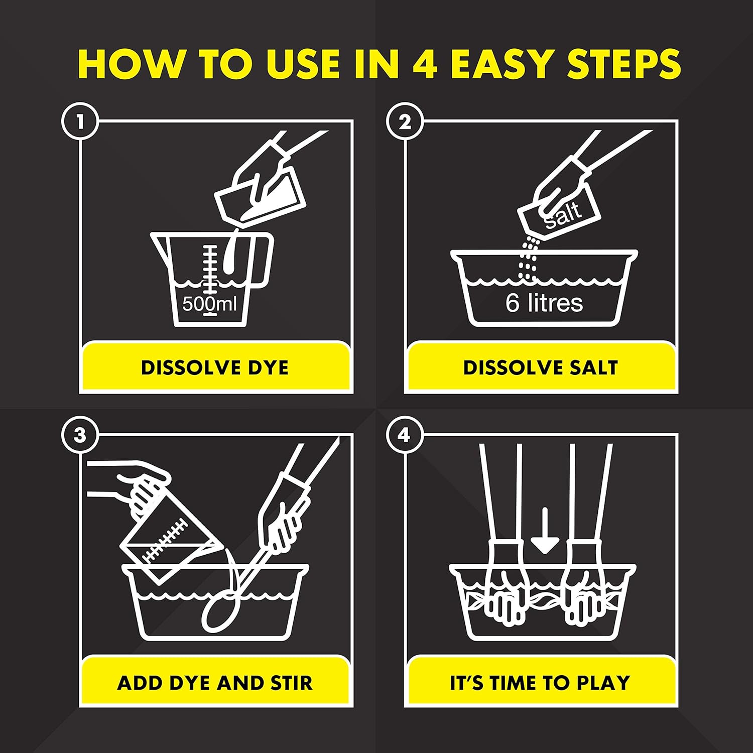- One sachet dyes 250g fabric to full shade or up to 500g for a lighter tone