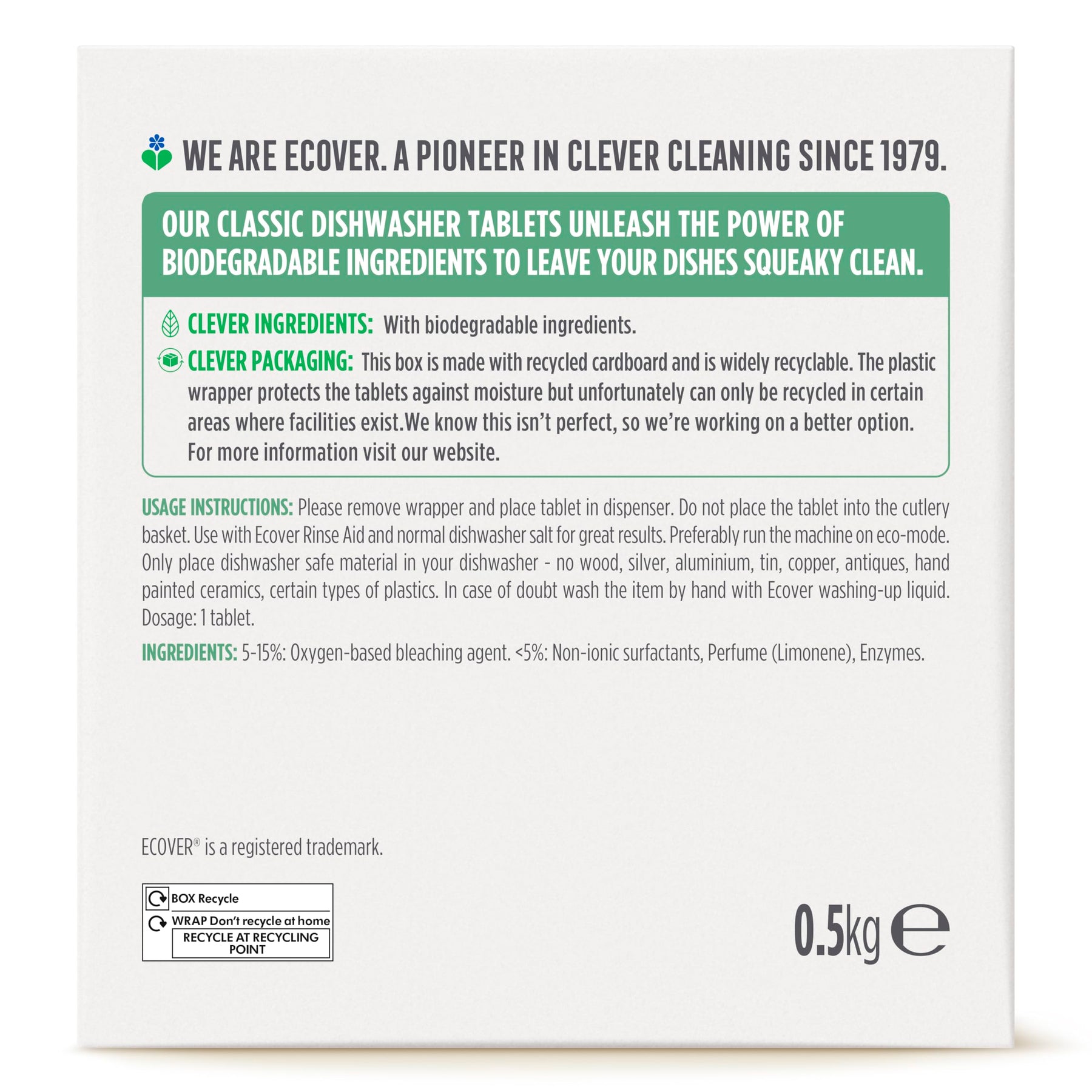 - For best results, use with Ecover Rinse Aid and check the level regularly.