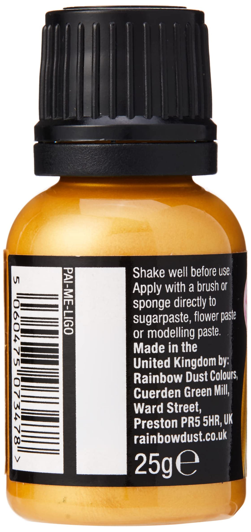 • Edible food paint with a vibrant, highly pigmented metallic light gold hue
