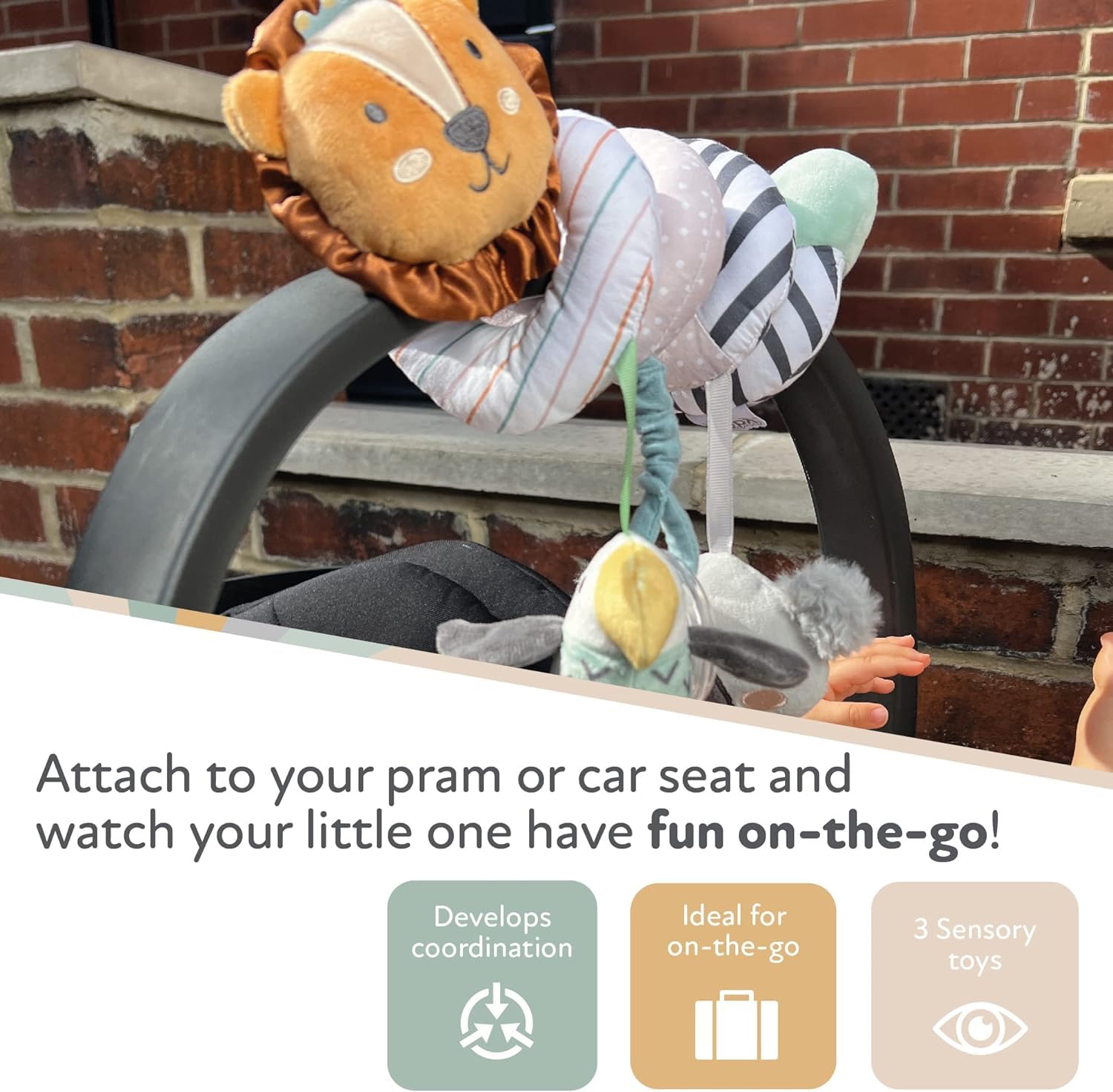 Keep your baby engaged and stimulated on the go with the Nuby Animal Adventures Activity Spiral, a soft and interactive pram toy designed to support early development through sensory exploration.