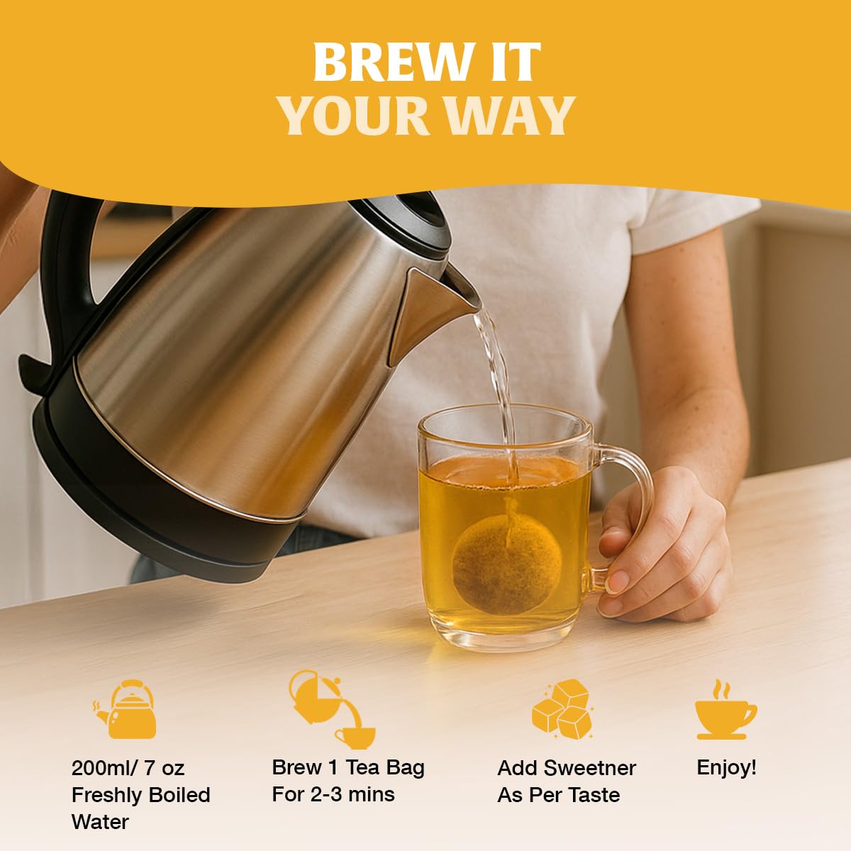 Sourced from premium plantations in India, our tea is hand-plucked by skilled farmers who ensure the highest quality procurement. Embrace a healthy lifestyle with this tisane that smells good, tastes good, and supports well-being—crafted with pure ingredients and no added preservatives.