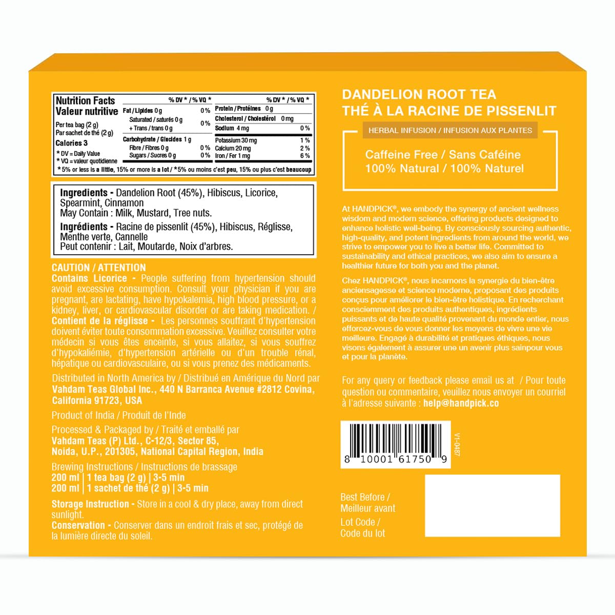 HANDPICK Dandelion Root & Leaf Tea Bags (100 Herbal Tea Bags) Caffeine-Free