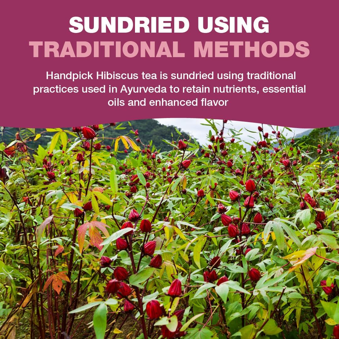 Enjoy a floral, pure cup of hibiscus tea with HANDPICK's 100% natural herbal tea bags. This vibrant tea brews a wine-red liquor with a strong body, alluring aroma, and a refreshing balance of tart and floral notes. Sourced from premium hibiscus flowers, it is perfect for crafting hot tea, iced tea, or kombucha at home.