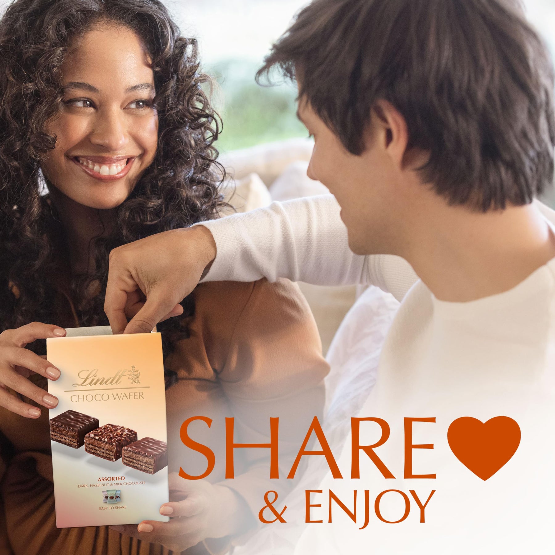 Indulge in the luxurious layers of crispy cocoa wafers and the finest Lindt chocolate with the Choco Wafers Assorted Box. Crafted by Lindt Master Chocolatiers since 1845, each of the 9 wafers delivers a perfect balance of crunch and creamy texture in a delightful fusion of milk chocolate, dark chocolate, and milk chocolate with roasted hazelnuts.
