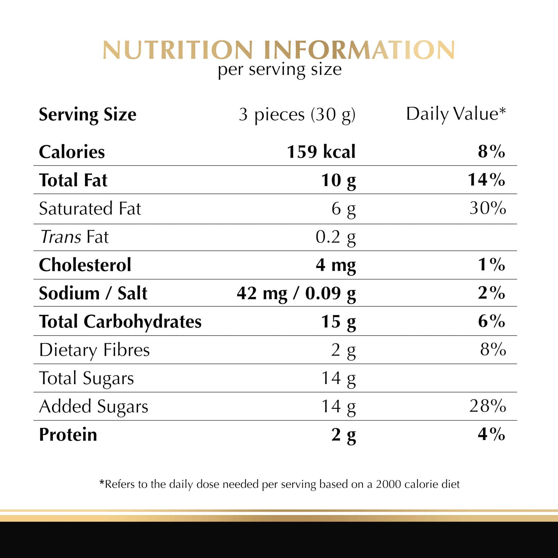 - Ingredients: Sugar, cocoa mass, cocoa butter, anhydrous MILK fat, emulsifier (SOYA lecithin), sea salt (0.3%)