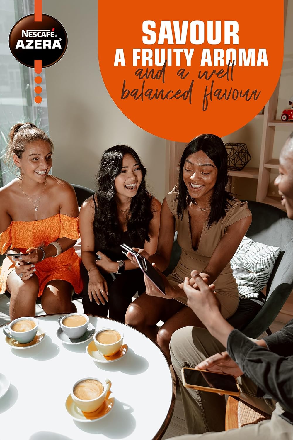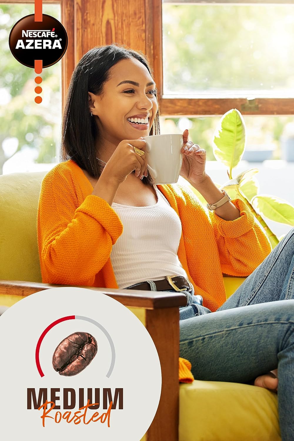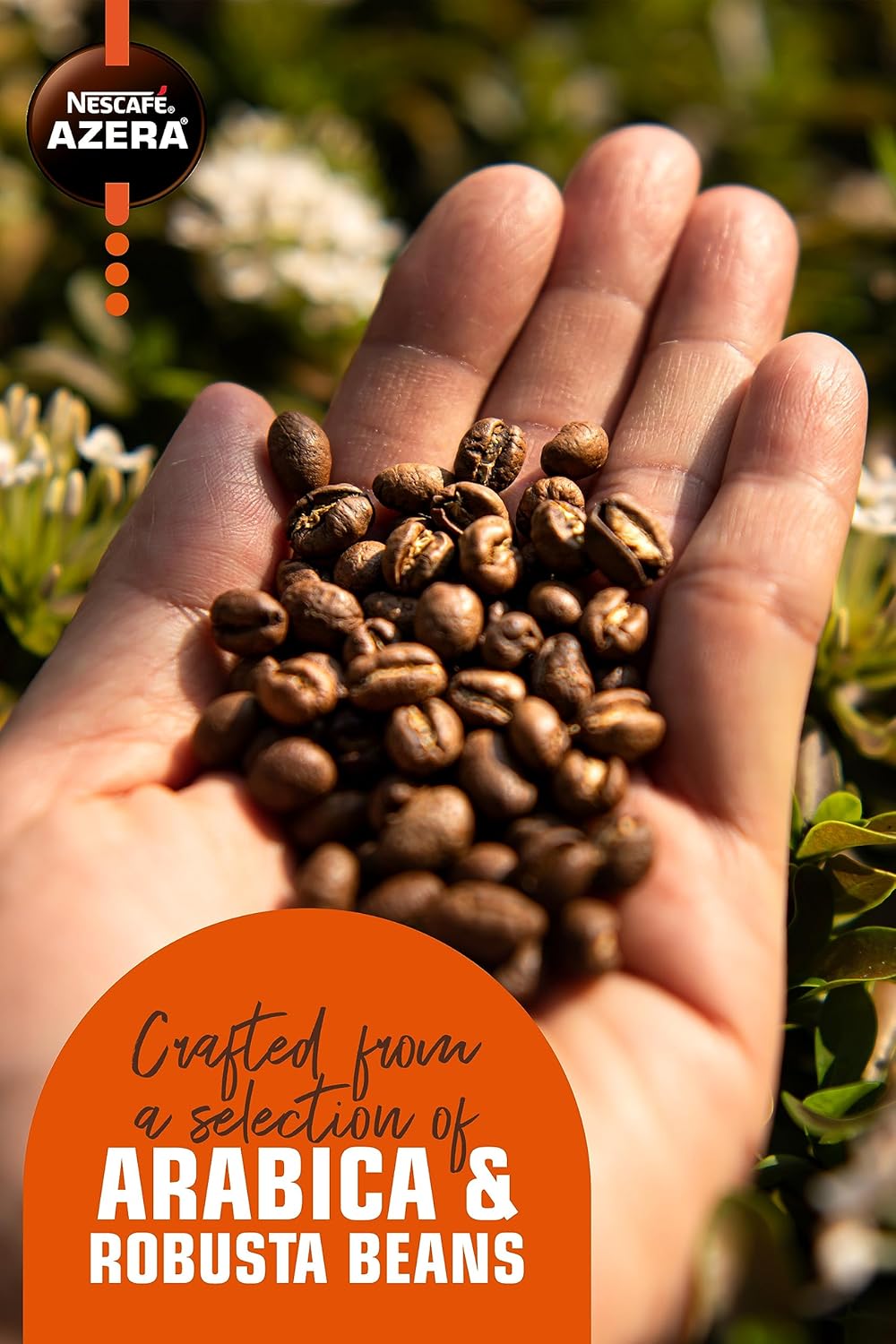 Experience café-quality Americano at home with NESCAFÉ AZERA Americano Instant Coffee. Crafted from a premium blend of Robusta and Arabica coffee beans, this unique instant coffee combines soluble coffee with finely ground roasted coffee for a rich, well-balanced cup with a fruity aroma.