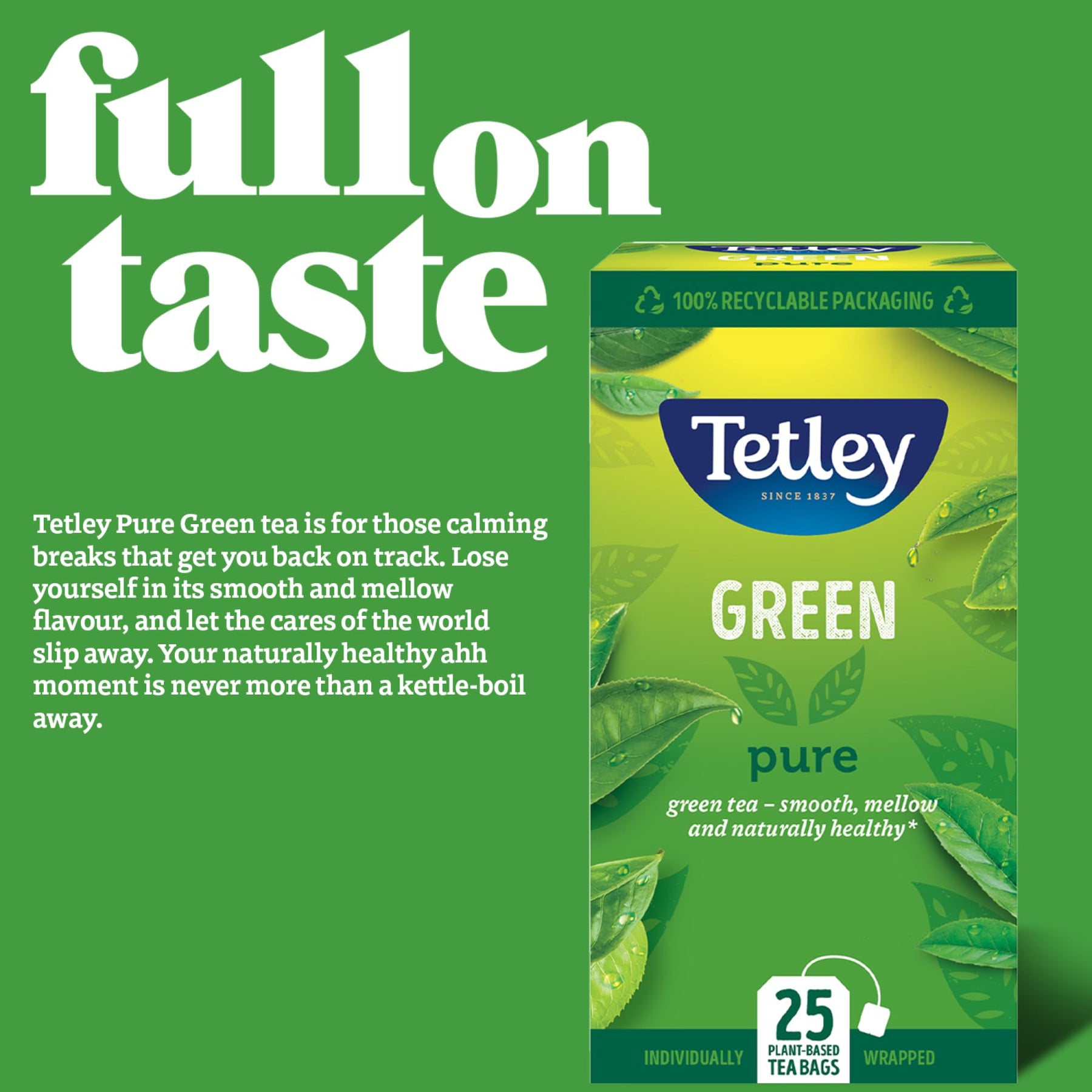 Tetley Pure Green Tea Bags - Naturally Smooth & Refreshing - Rainforest Alliance Certified - 150 Teabags (6x25)