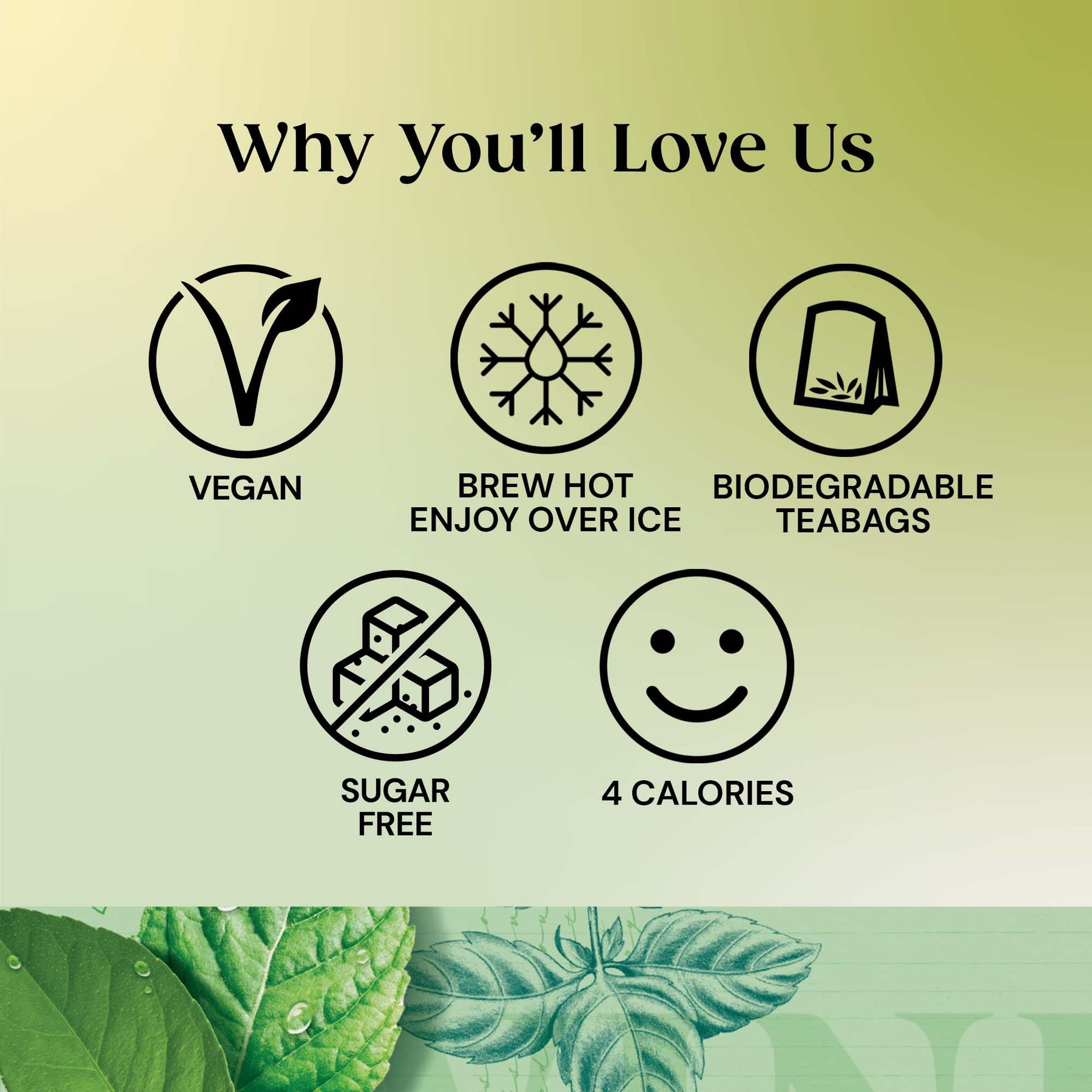 We've blended the delicate taste of green tea with refreshing mint - all you have to do is take a sip and feel revitalised. This delicious, cooling combination is an ideal lift for any time of day.