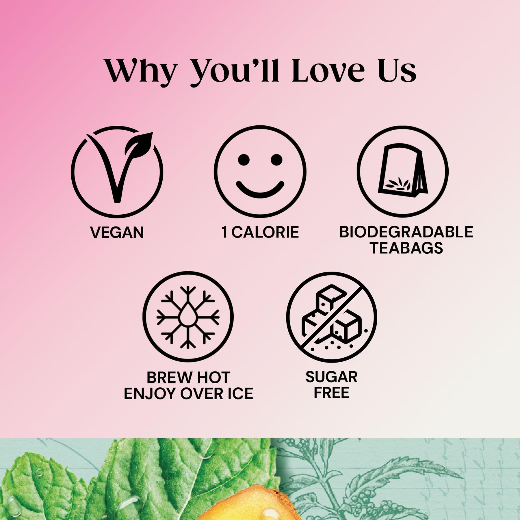 • Herbal infusion blend of green tea (36%) and peppermint (36%) for a refreshing, invigorating flavor