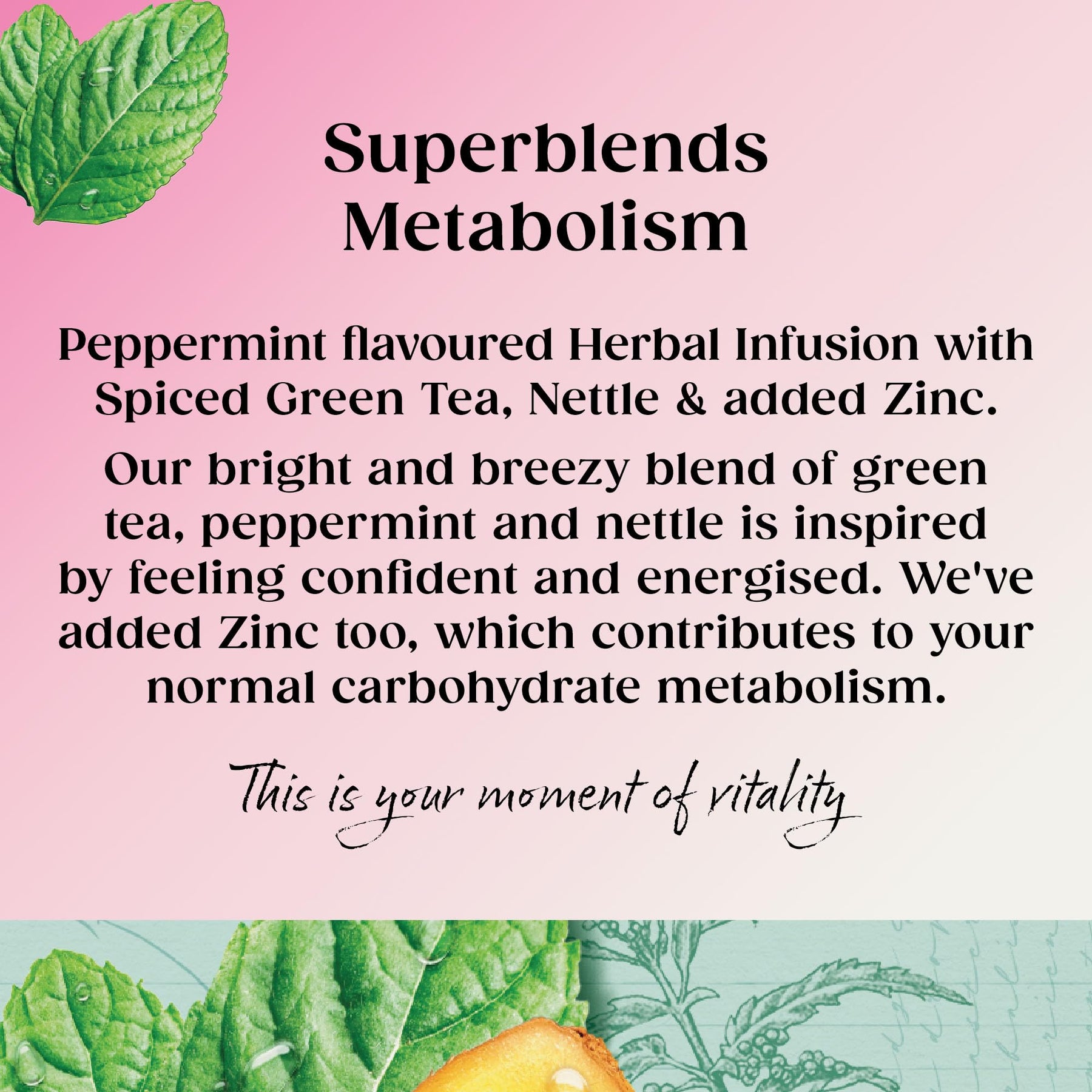 Twinings Superblends Metabolism Tea - Peppermint & Spiced Green Herbal Infusion with Nettle & Zinc, 80 Biodegradable Tea Bags