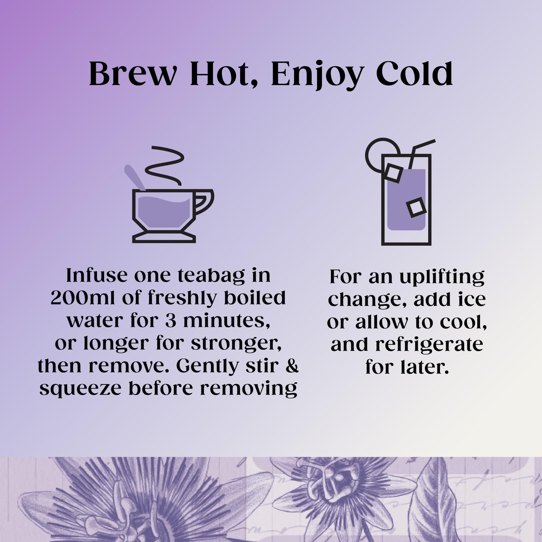 • Brewing instructions: Pour boiling water (100°C/212°F) over one tea bag, steep for 3–5 minutes, then remove and enjoy