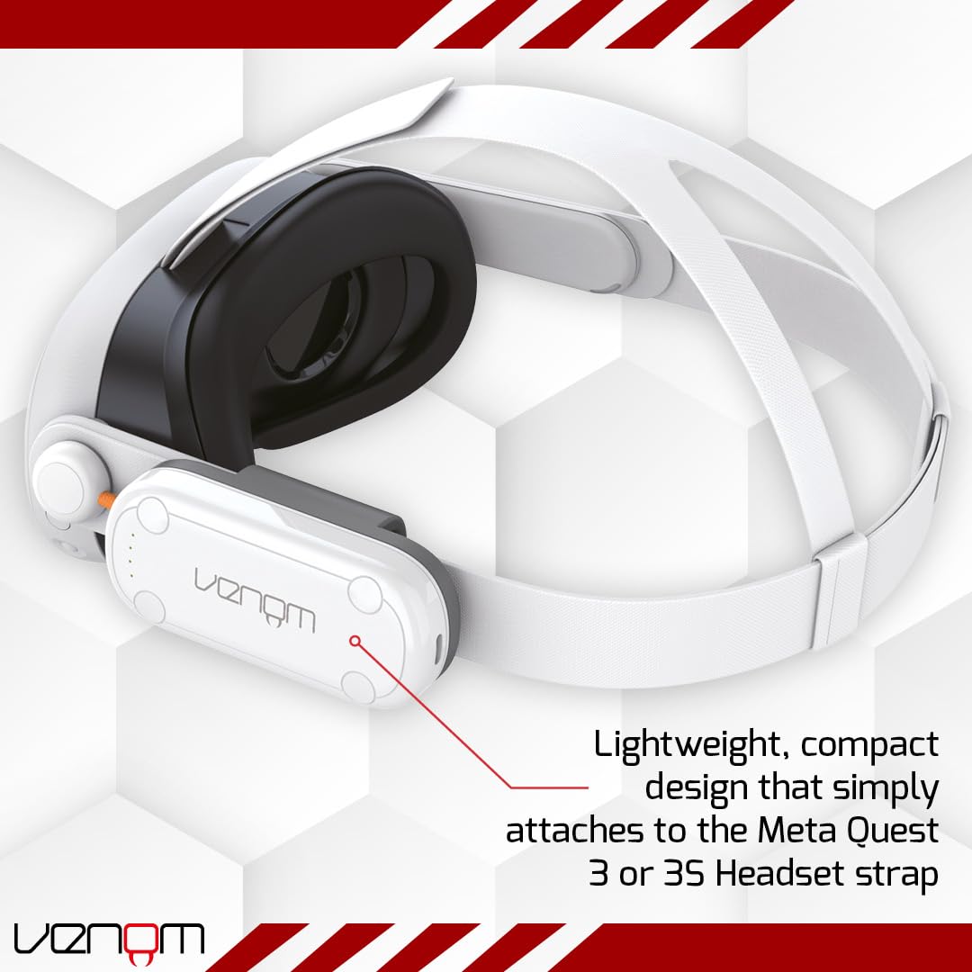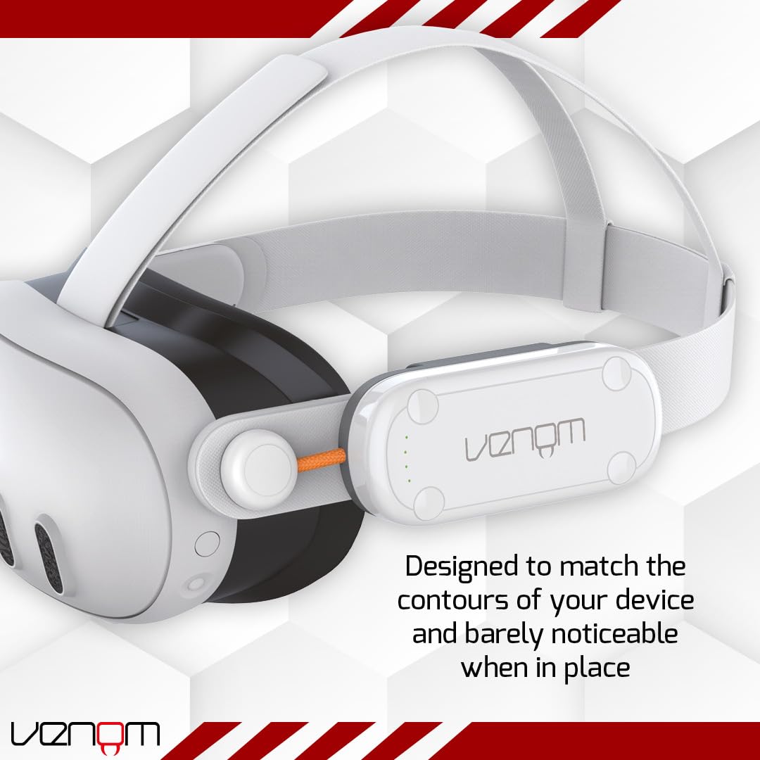 Extend your immersive Meta Quest 3 and Meta Quest 3S VR experience with the Venom Rechargeable 3000mAh Power Bank. Designed specifically for uninterrupted gaming, this high-capacity battery pack attaches directly to your headset strap and plugs into the device's charging port—no extra cables or adapters needed.