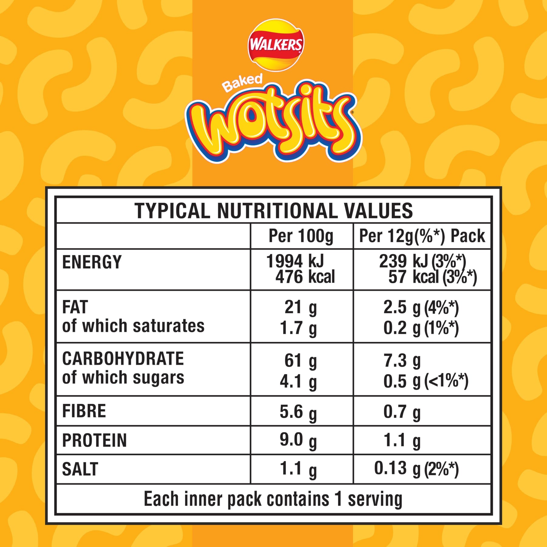 Enjoy the deliciously cheesy, toasty flavour of Walkers Wotsits Cheese Toastie in this convenient 6-pack multipack. Made with chickpea and baked, not fried, these light and airy crisps offer a source of fibre and less salt, making them a tastier way to snack. Perfect for lunchboxes, on-the-go moments, or sharing with friends.