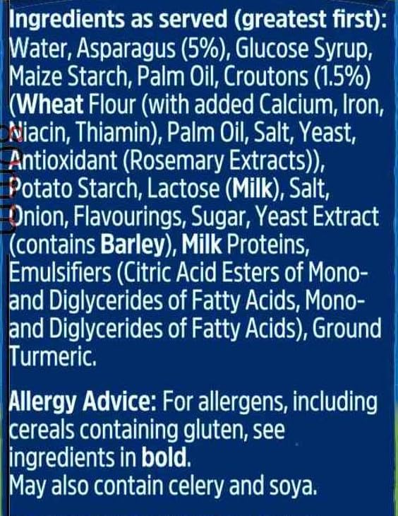- Cream of asparagus flavour with crunchy croutons for added texture