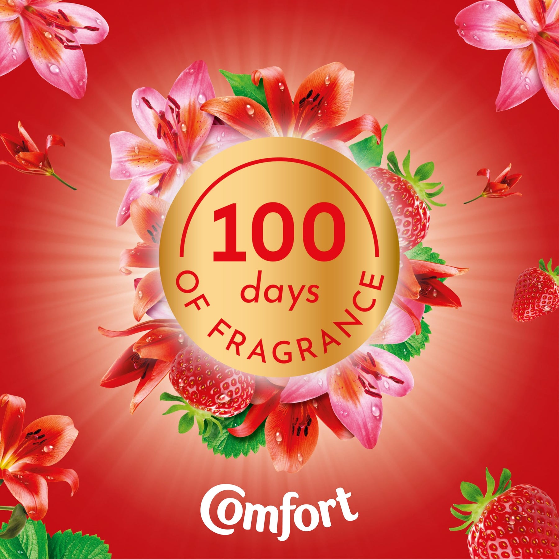 Experience long-lasting freshness with Comfort Perfume Creations Strawberry & Lily Fabric Conditioner, designed to keep clothes smelling beautifully fragrant for up to 100 days after washing and line drying. Infused with motion-activated fragrance technology, this fabric conditioner releases a burst of scent with every movement, ensuring your clothes stay fresh throughout the day.