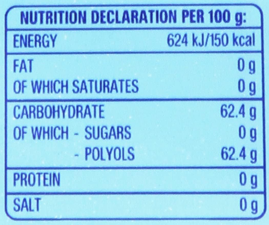 • Contains a source of phenylalanine; excessive consumption may have laxative effects