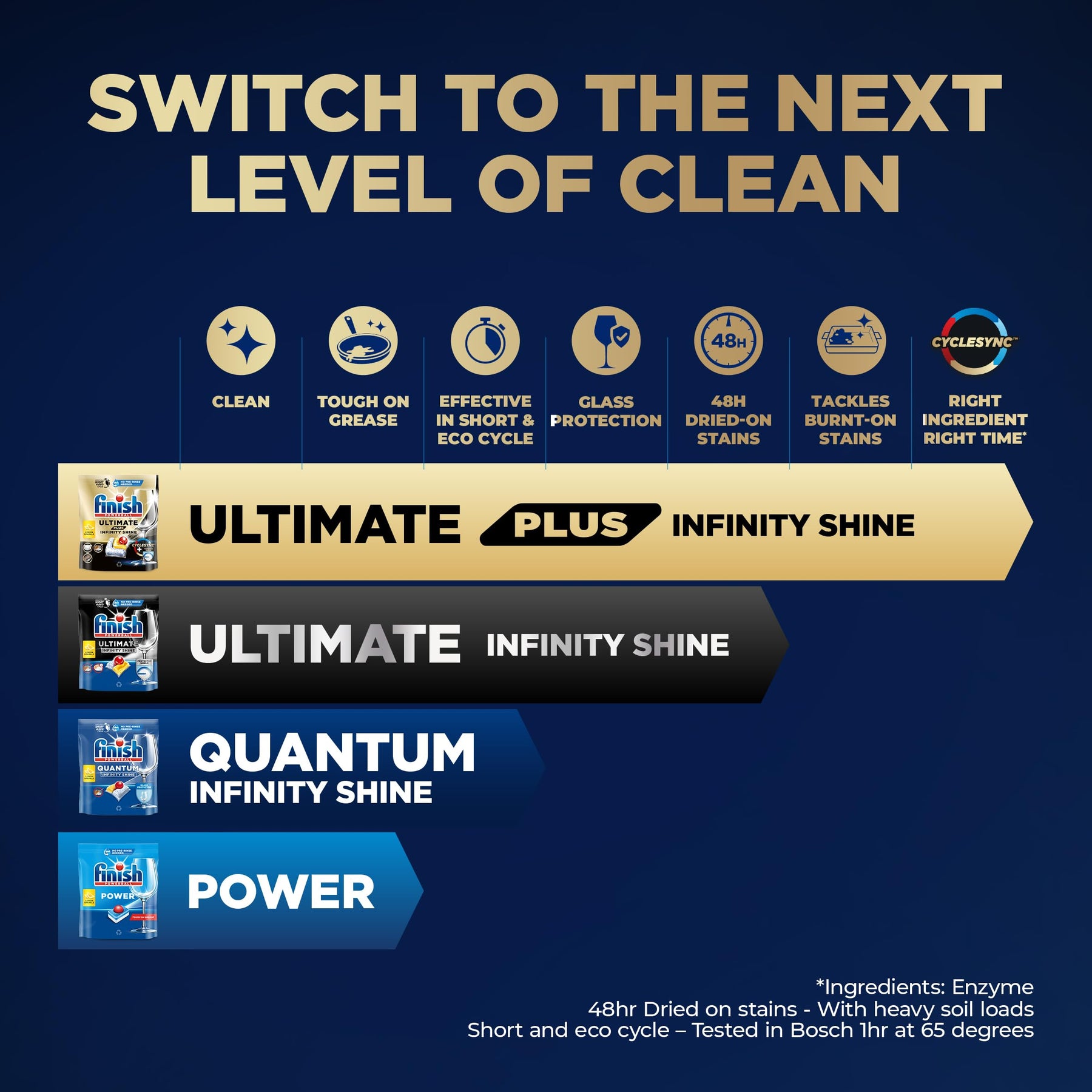 - CYCLESYNC™ Technology releases the right ingredients at the right time for optimal cleaning