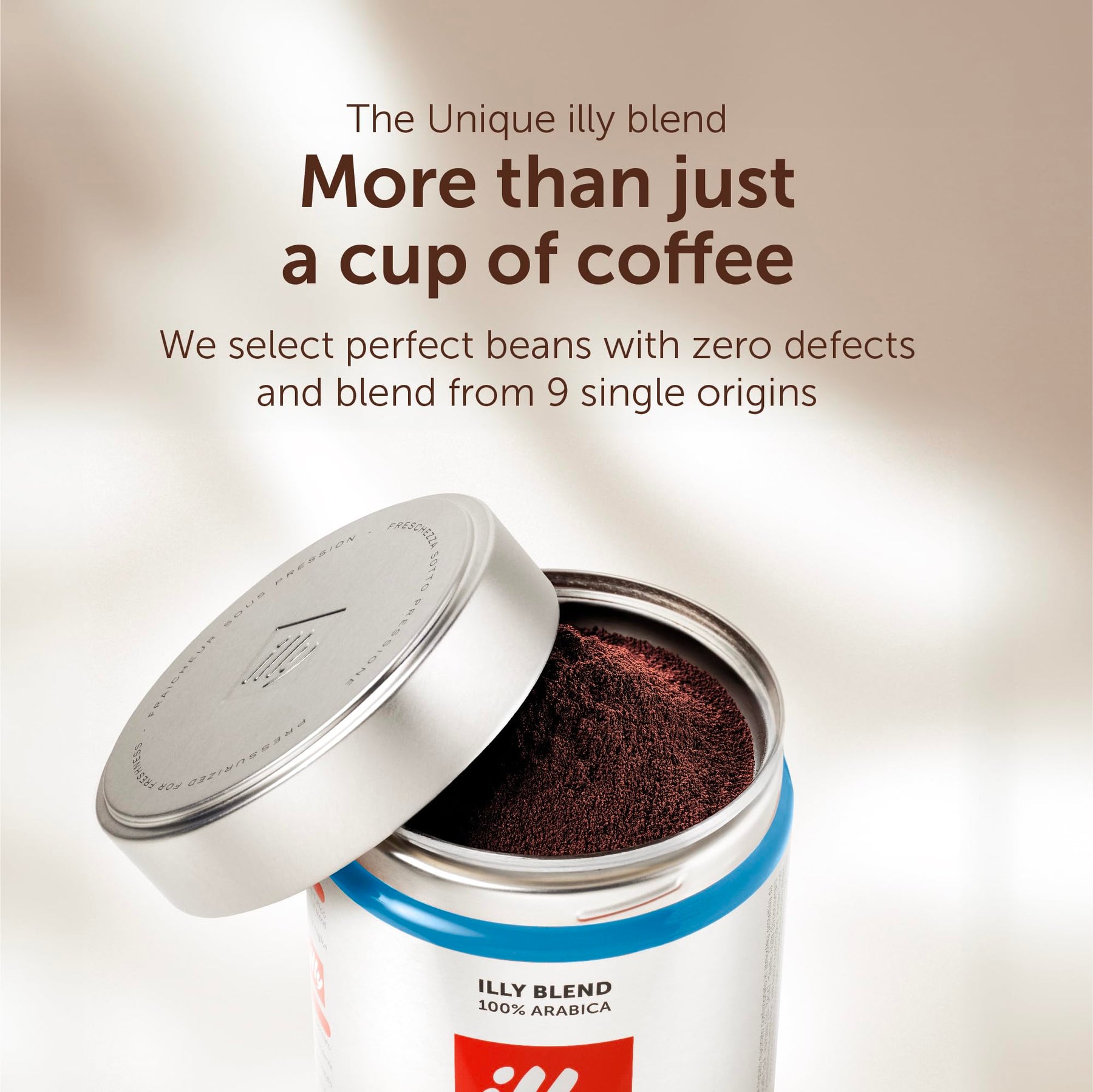 Made from 100% sustainably-grown Arabica beans sourced from the finest coffee-growing regions worldwide, illy's signature blend is roasted and packed in Trieste, Italy. The coffee is sealed in an air-free, pressurized tin to preserve freshness, enhance aroma, and ensure every brew is rich and full-bodied.