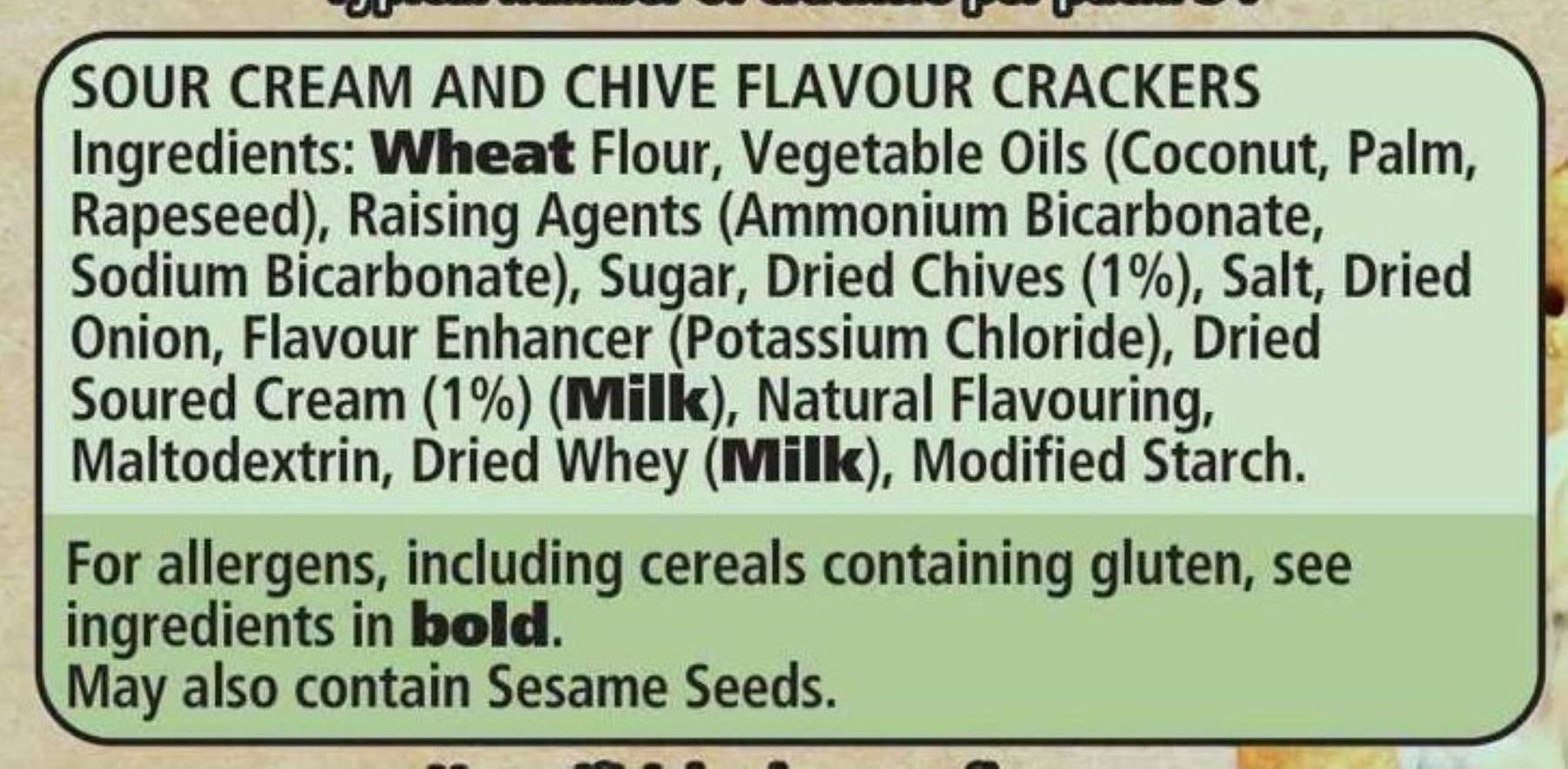 - Ingredients: Flour (WHEAT Flour, Calcium, Iron, Niacin, Thiamin), Vegetable Oil (palm), BARLEY and BARLEY Malt Extract, Glucose Syrup, Natural Flavouring (contains MILK), Salt, Raising Agents (Ammonium Bicarbonate, Sodium Bicarbonate), Dried Tomato Flakes (0.5%), Basil, Malted BARLEY Flour, Emulsifier (E472e), WHEAT Starch