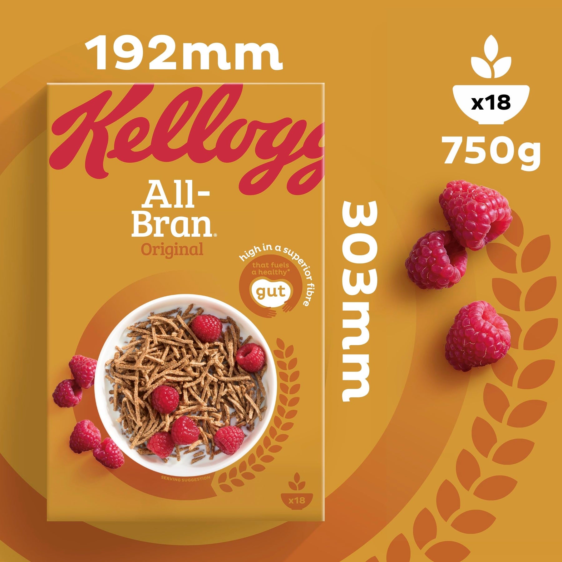 Kellogg's All-Bran Breakfast Cereal Box, 750g - High Fibre Whole Grain Cereal with Natural Wheat Bran