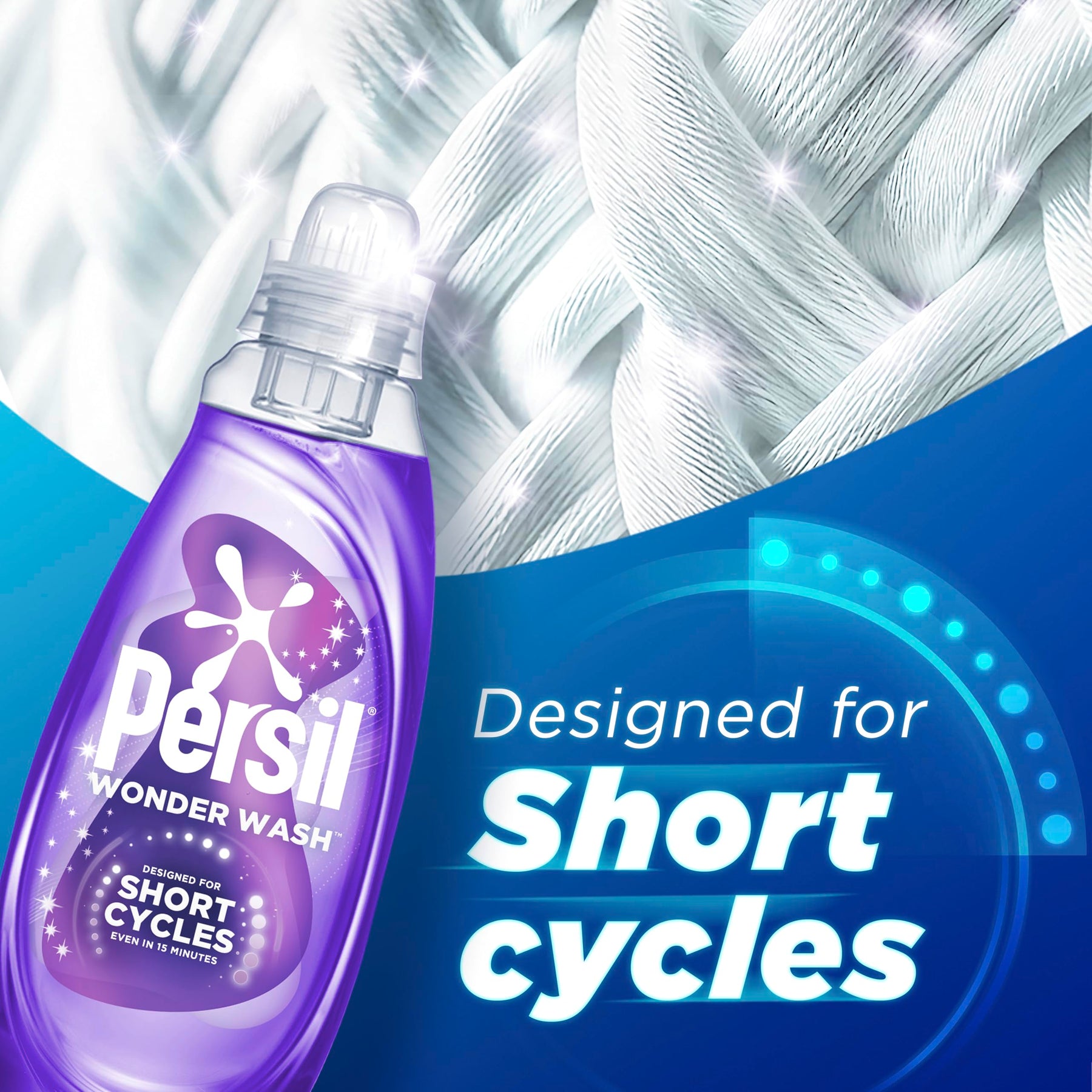 Persil Wonder Wash Dazzling White Liquid Detergent delivers a powerful clean in just 15 minutes, making it ideal for refreshing white clothes quickly while maintaining and enhancing their brightness. Specially formulated for short wash cycles, this detergent effectively removes invisible dirt, sweat, and odours, leaving your laundry fresh and vibrant.