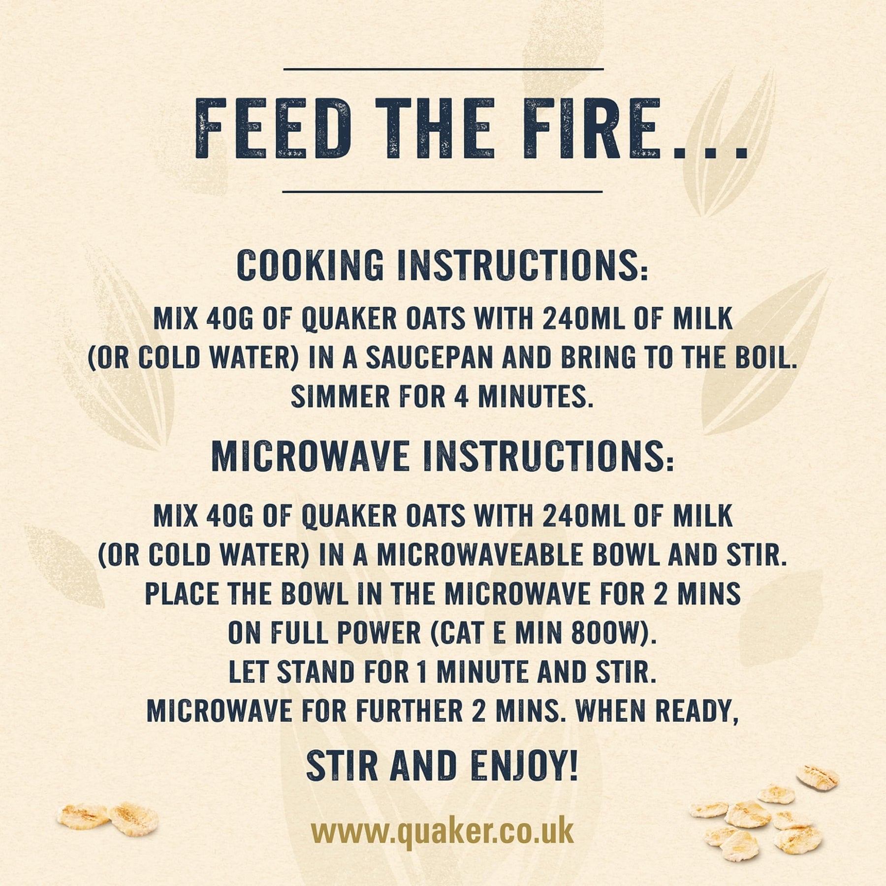 Come rain or shine, kick-start your morning with a warming bowl of traditional Quaker porridge made from 100% Quaker gluten free rolled oats. Enjoy the natural goodness of oats with no added sugar, perfect for a healthy breakfast. Use it to create your own Overnight Oats or blend into your favourite smoothie for a fibre-rich boost.