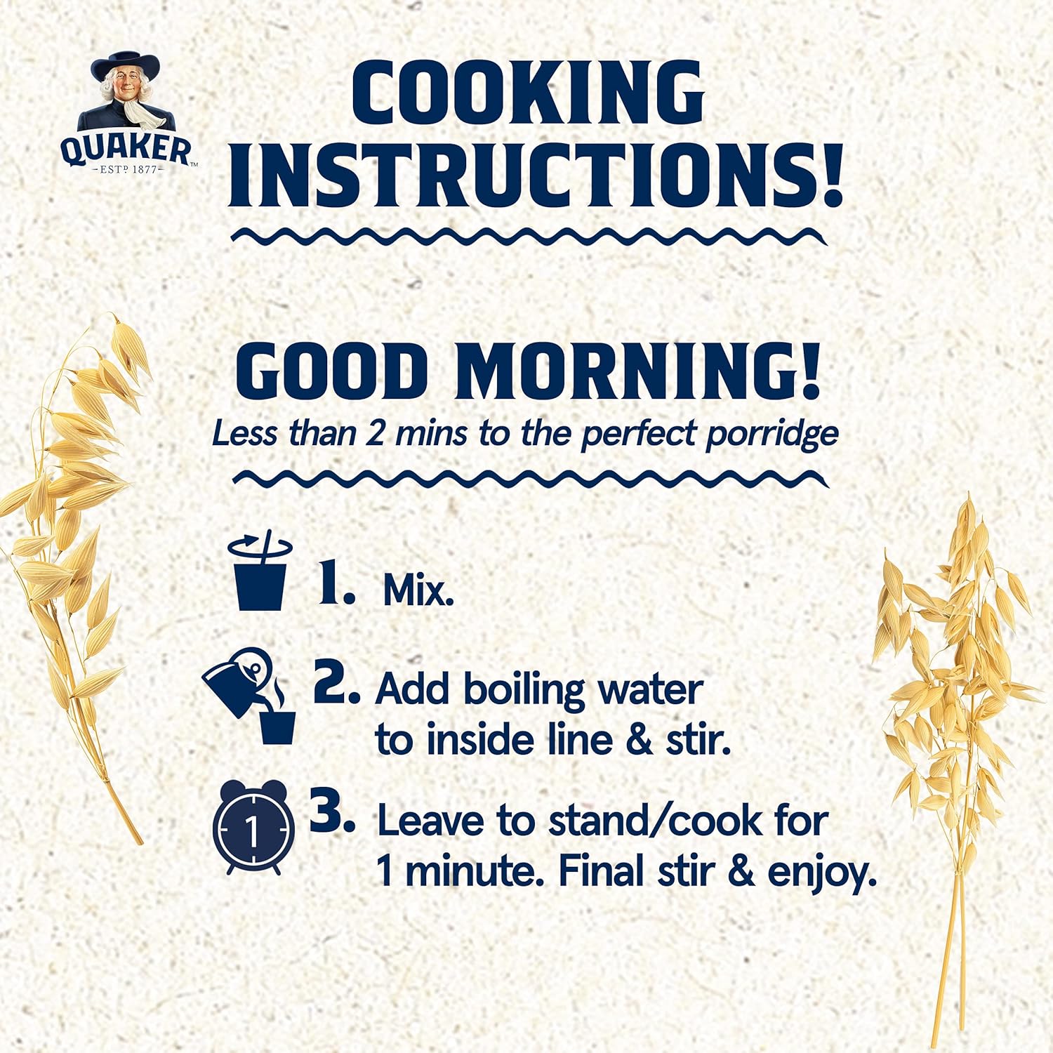 Start your morning with the delicious convenience of Quaker Oat So Simple Golden Syrup Porridge Pots. Made with 100% whole grain porridge oats, these ready-in-minutes pots deliver a creamy, satisfying breakfast without the need for cooking or microwaving.