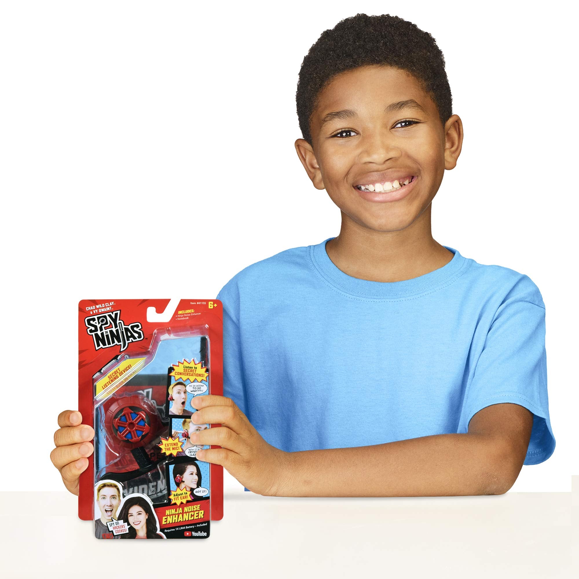 Join the Spy Ninjas in their action-packed battle against Project Zorgo with the Ninja Noise Enhancer! Inspired by the popular adventures of Vy Qwaint and Chad Wild Clay, this electronic spy toy lets young agents eavesdrop on secret hacker conversations just like their favorite heroes. Perfect for imaginative role play and stealthy missions at home or on the go.