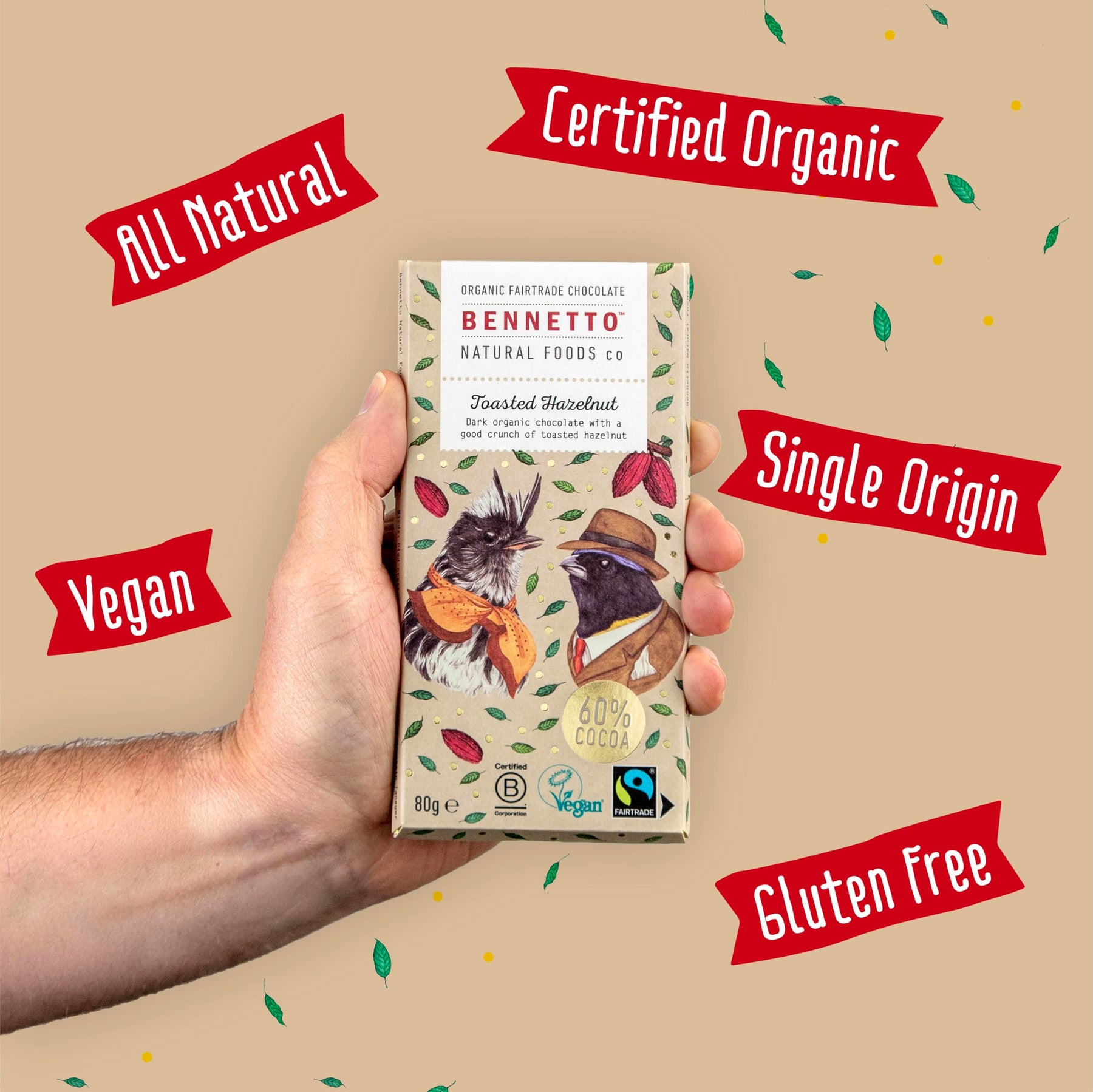 This chocolate is not only delicious but inclusive—entirely vegan and gluten-free, making it suitable for a wide range of dietary preferences. Bennetto’s commitment to sustainability goes beyond ingredients: the brand is B Corp Certified, reflecting its dedication to social and environmental responsibility throughout the supply chain.