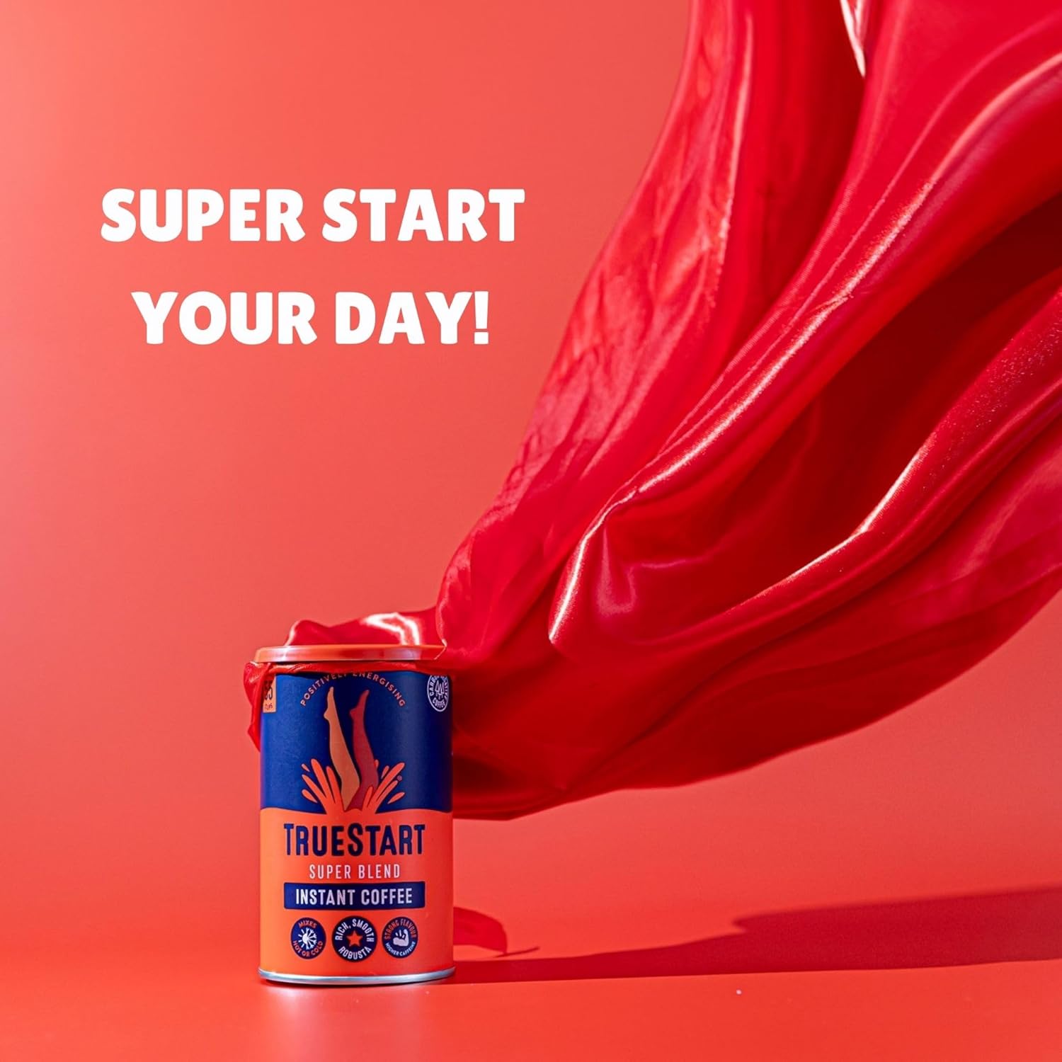 Experience café-quality coffee at home with TrueStart's Barista Grade Super Blend Instant Coffee. Sourced from premium Robusta beans grown at high elevations in Colombia, this instant coffee delivers a rich, smooth taste with notes of chocolate and a clean espresso flavour—perfect for those who appreciate a strong, energising brew without the jitters or crash.