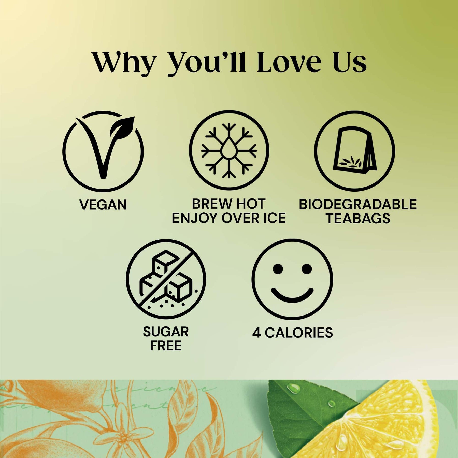 A light and delicate green tea with the fresh, zesty taste of lemon, crafted with all natural ingredients™. Sourced from young Camellia sinensis leaves picked at dawn in China to preserve their subtle flavor, this tea offers a bright, clean, and refreshing cup. A natural source of flavonoid antioxidants, it contains no artificial flavors—just the pure, authentic taste of nature. Perfect for those seeking a gently uplifting tea experience without the need for milk.