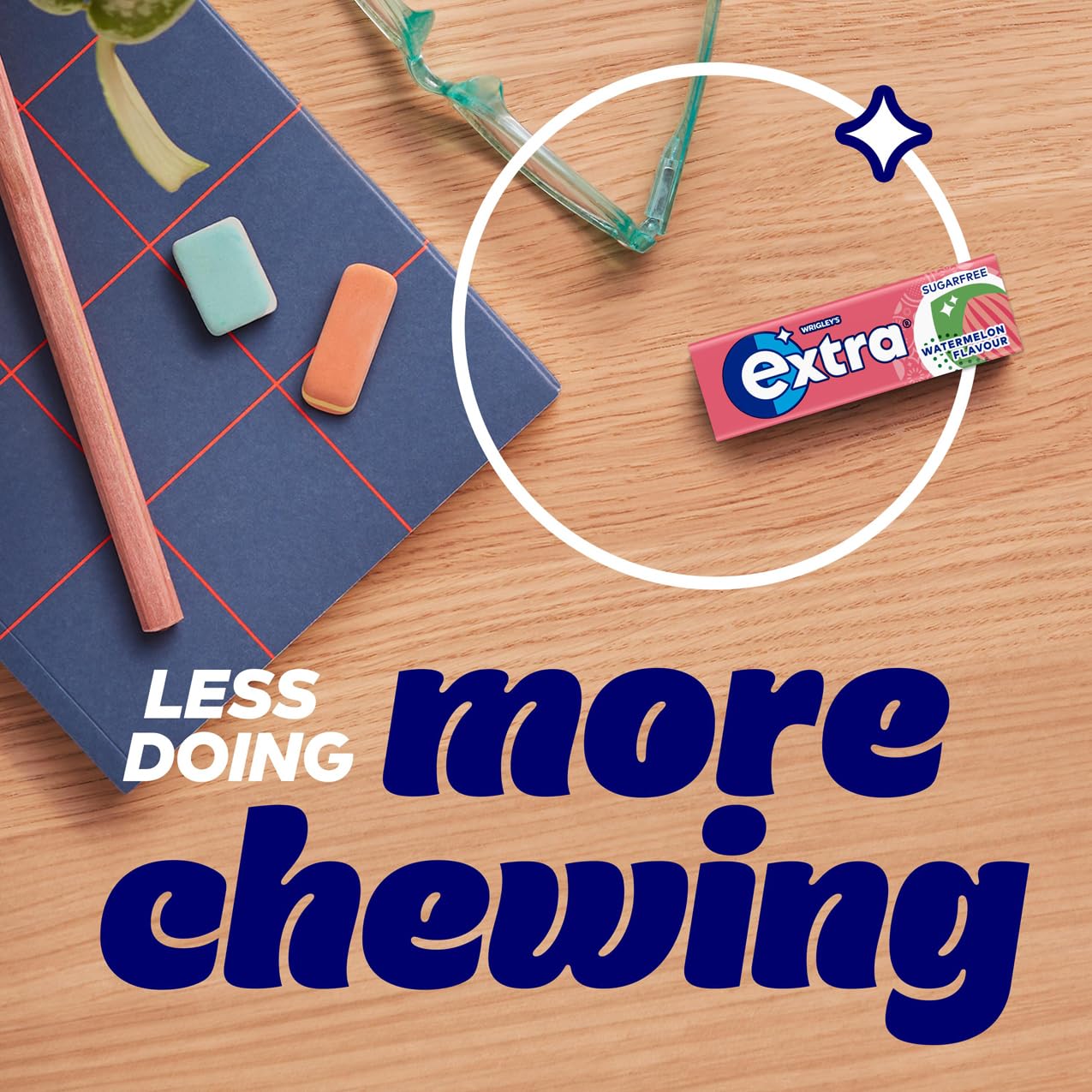 Stay fresh and confident throughout the day with Extra Watermelon Flavour Sugar Free Chewing Gum. Perfect for on-the-go freshness, this sugar-free gum is ideal for maintaining fresh breath after meals or during busy workdays. With a delicious watermelon taste and the added benefits of xylitol, it's a smart choice for both breath freshness and dental health.