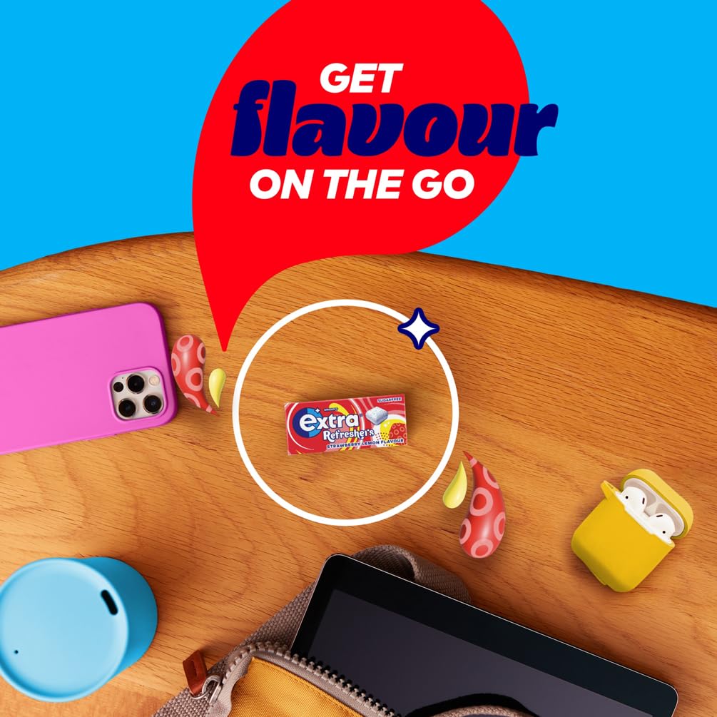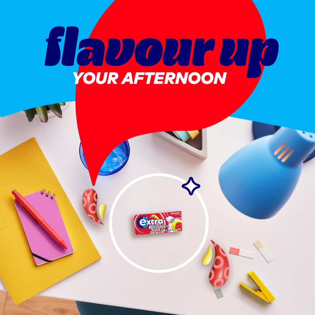Stay fresh and confident throughout the day with Extra Refreshers Sugar Free Chewing Gum in delicious strawberry lemon flavour. These cube-shaped gums feature a crisp outer shell that gives way to a soft, chewy centre, delivering a burst of flavour with every bite. Sweetened with xylitol and other sugar substitutes, this gum is perfect for maintaining fresh breath after meals or whenever you need a quick refresh.